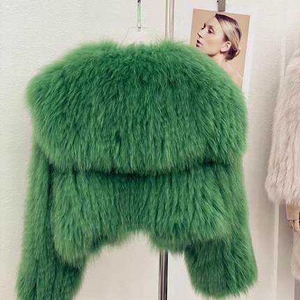 2025冬新款韩版短款海军领狐狸毛仿皮草外套女毛毛年轻款大衣翻领