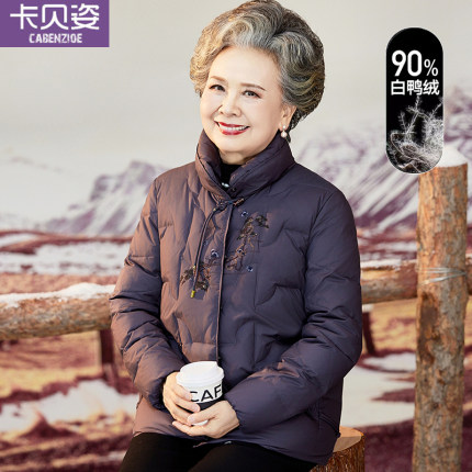 老年人女妈妈羽绒服女高领外套奶奶冬季保暖衣服小个子老太太冬装