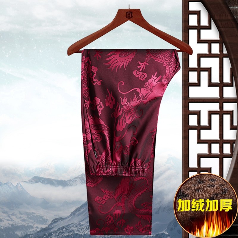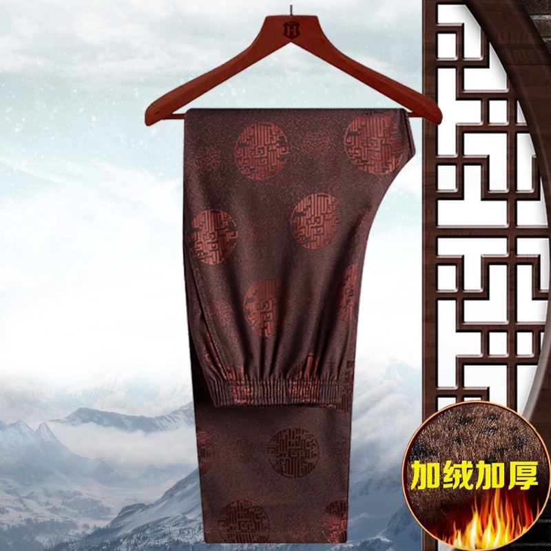 爸爸裤加绒加厚爷爷松紧直筒唐装