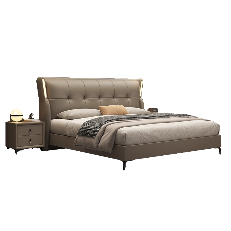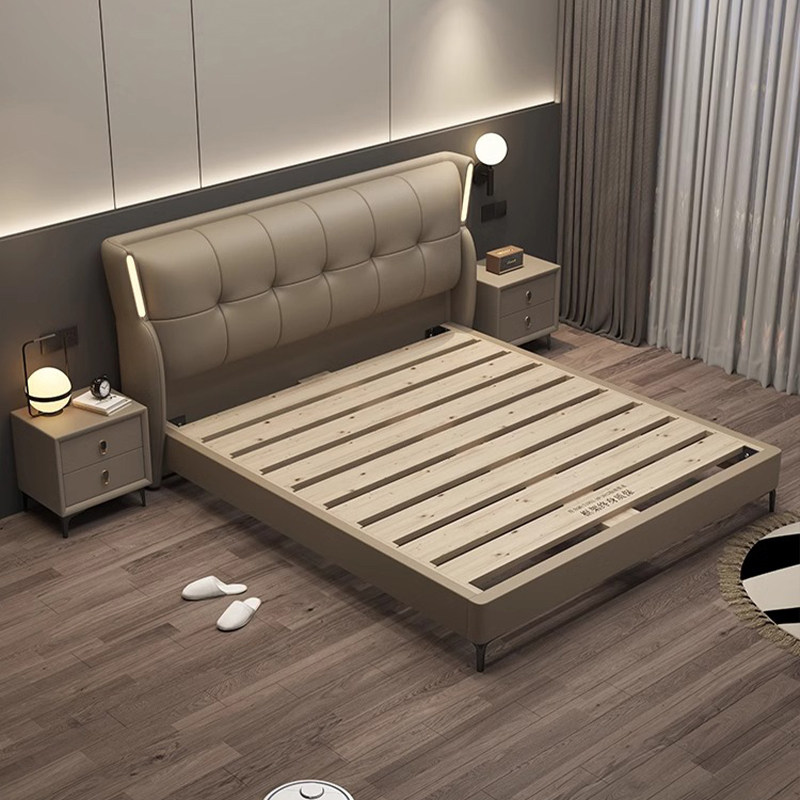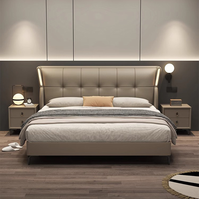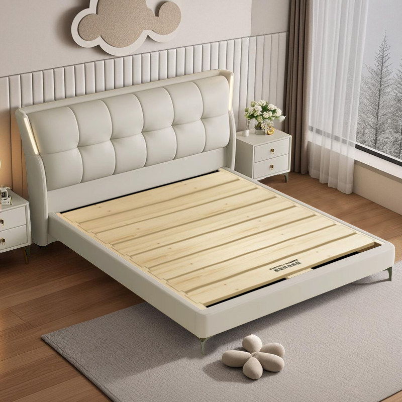 全友家居真皮床头层牛皮大床双人床主卧1.5m1米8婚床现代意式极简