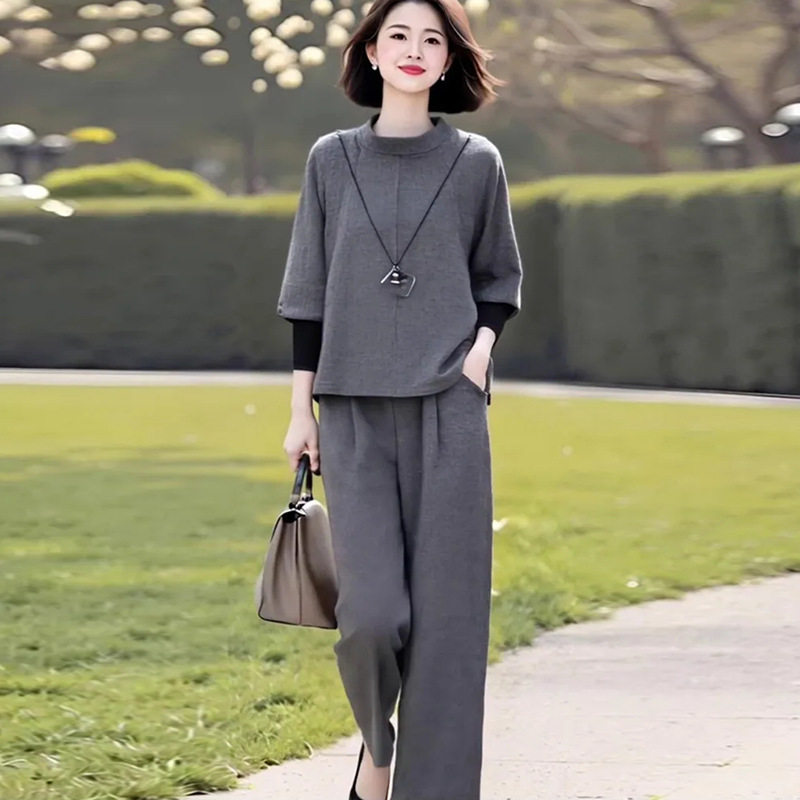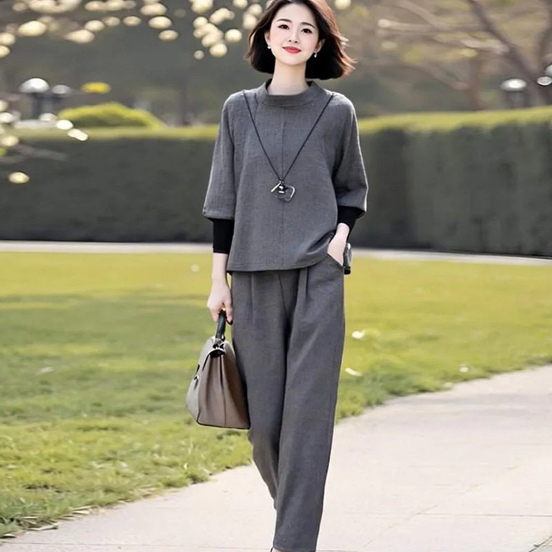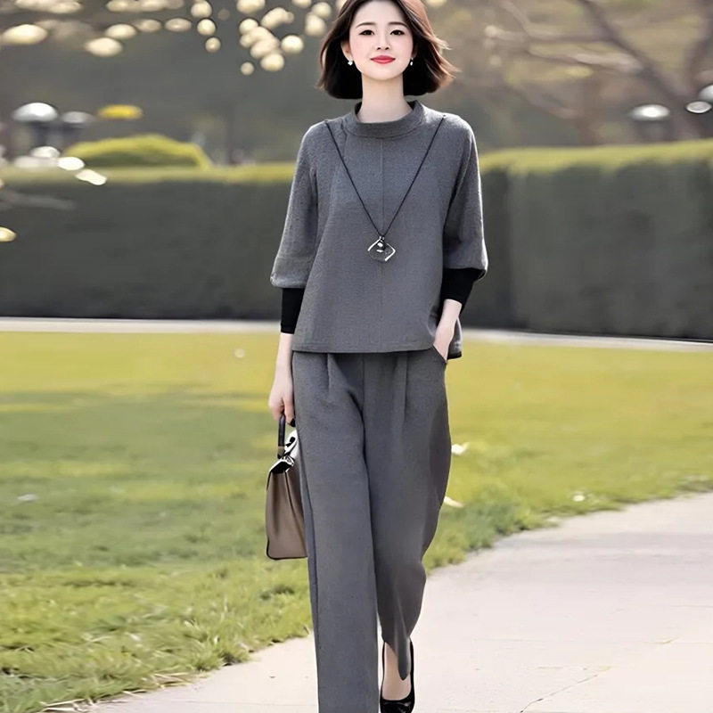 素雅订制女装原创品牌春秋新款时尚洋气气质优雅拼接上衣裤子套装