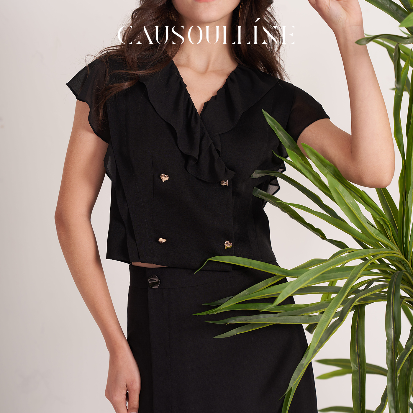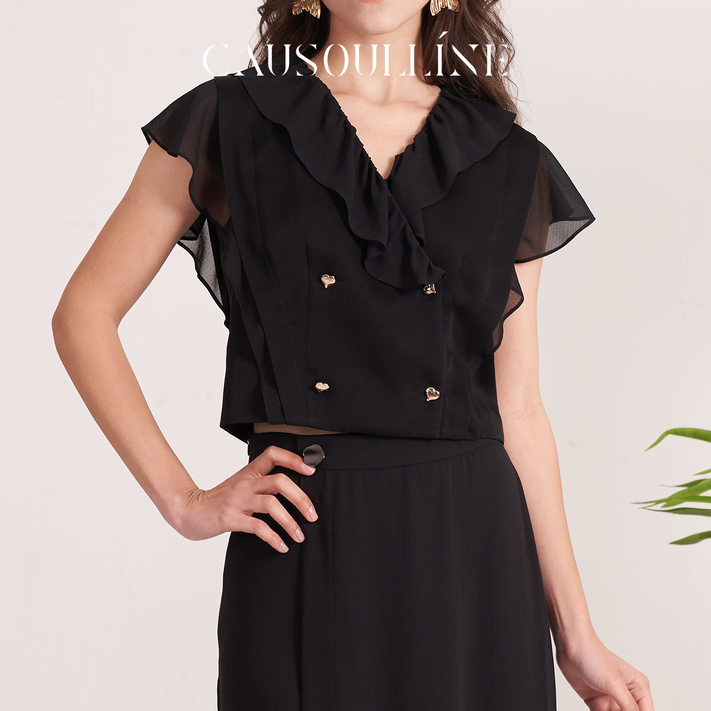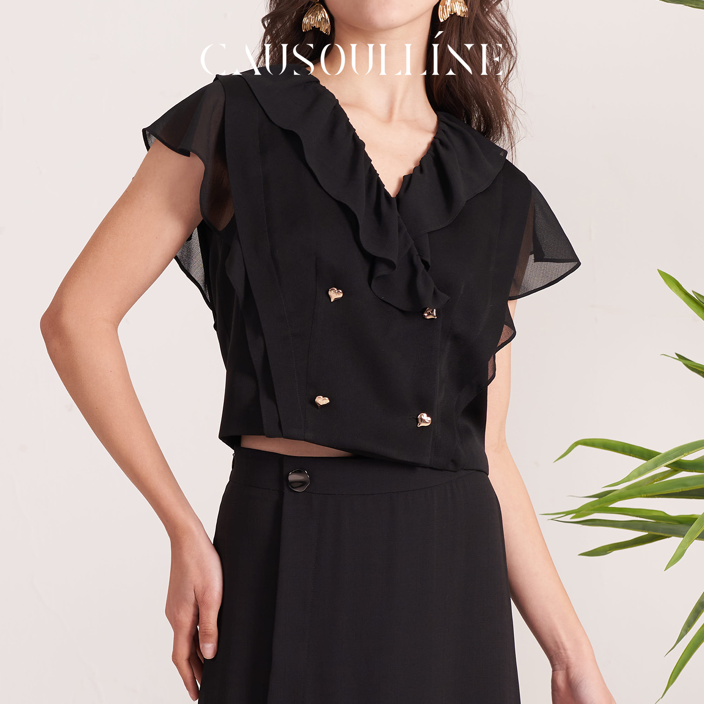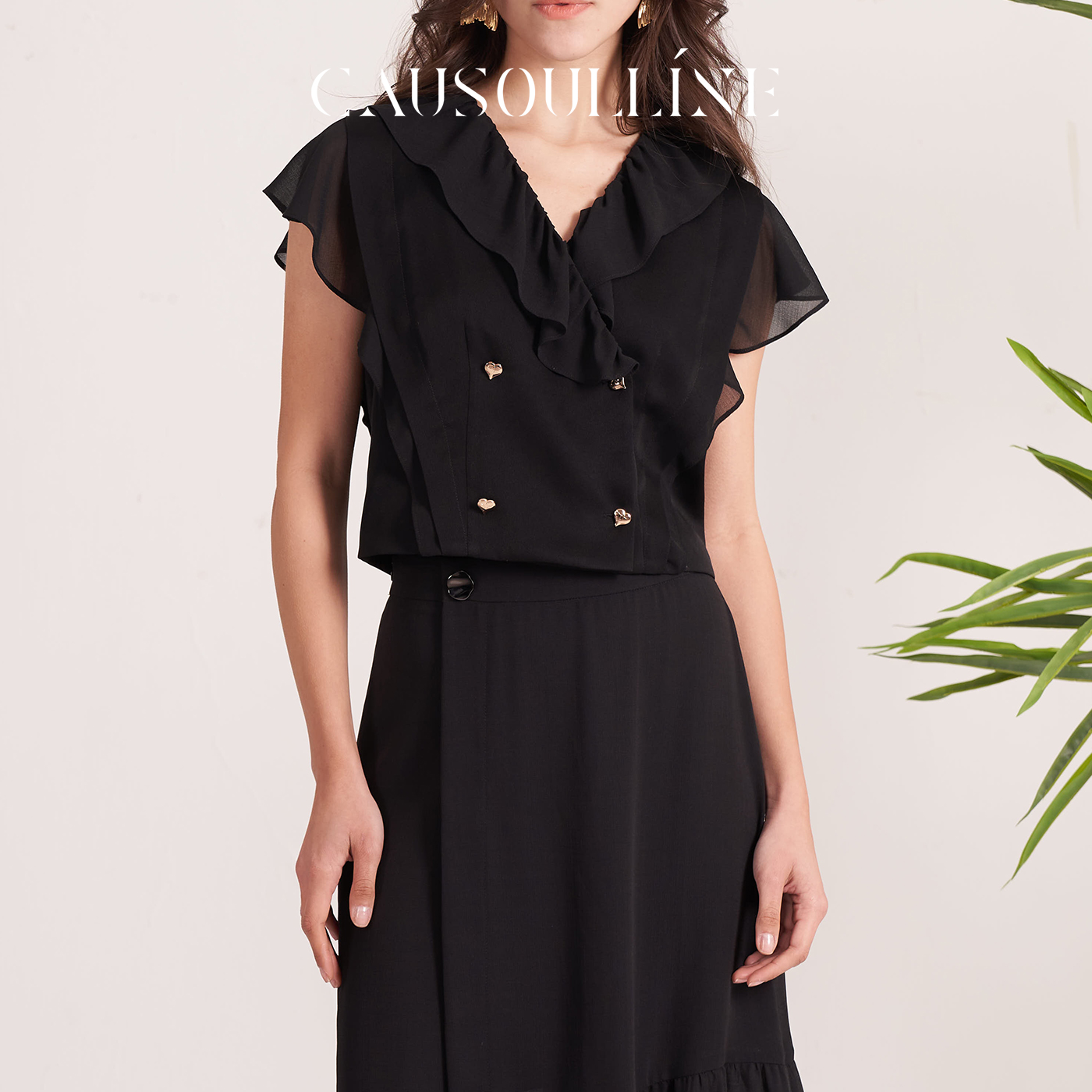 高斯雪岚夏季新款荷叶边优雅气质雪纺衫V领衬衫显瘦百搭上衣女