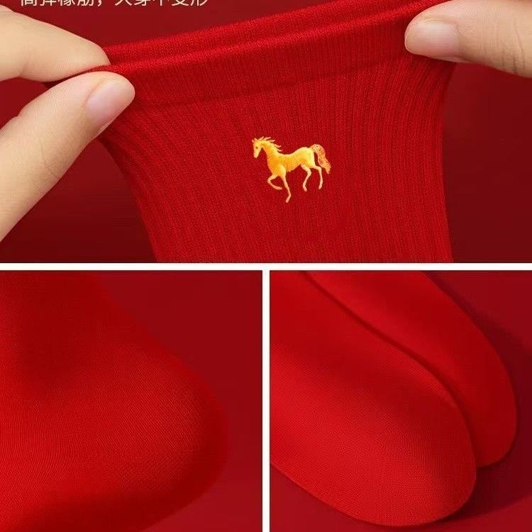 新款马年红袜子本命年女男士纯棉情侣新年礼物男女款本命年红袜子