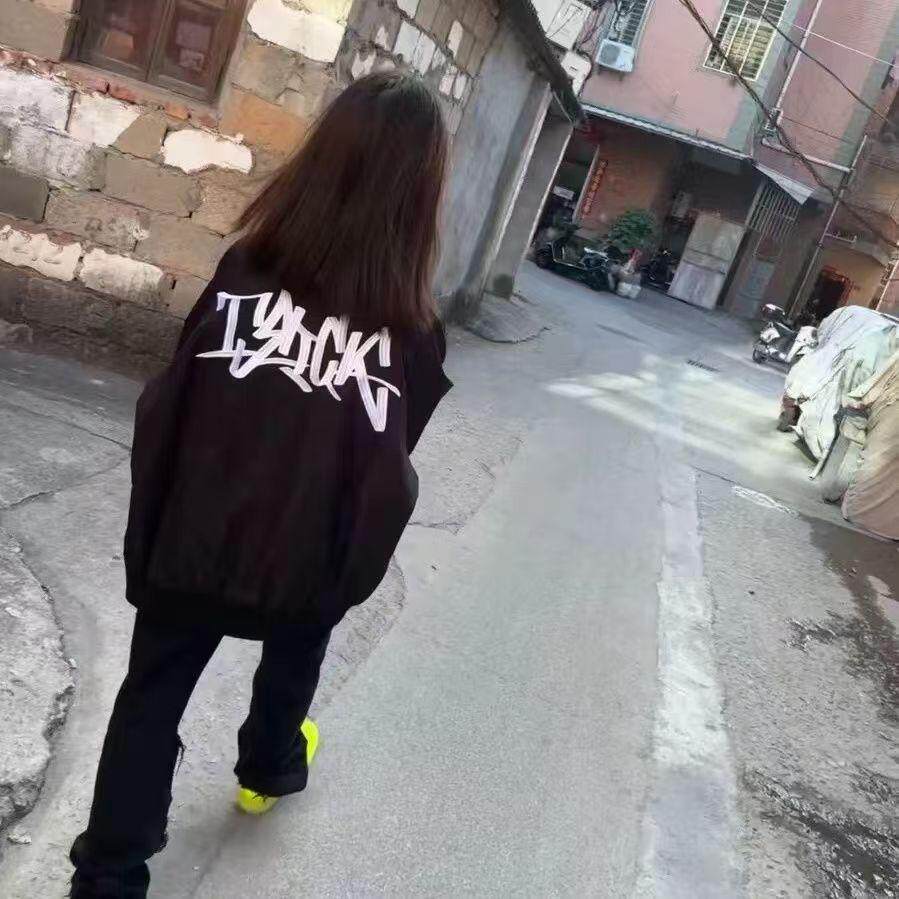 美式复古黑色飞行员夹克女春秋新款高街hiphop潮牌棒球服情侣外套