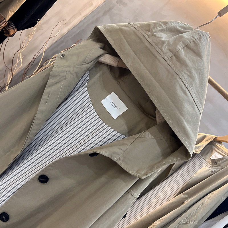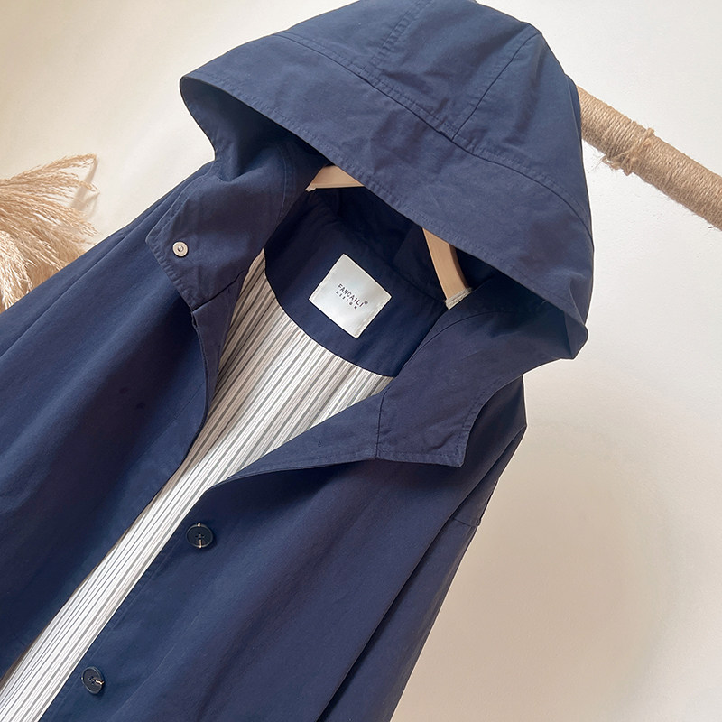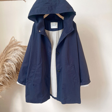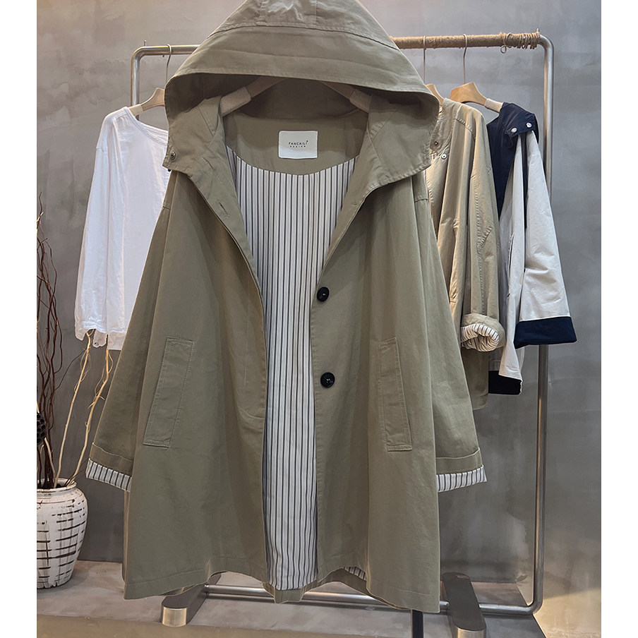秋装新款2025韩版休闲纯色宽松上衣百搭长袖中长款连帽风衣外套女