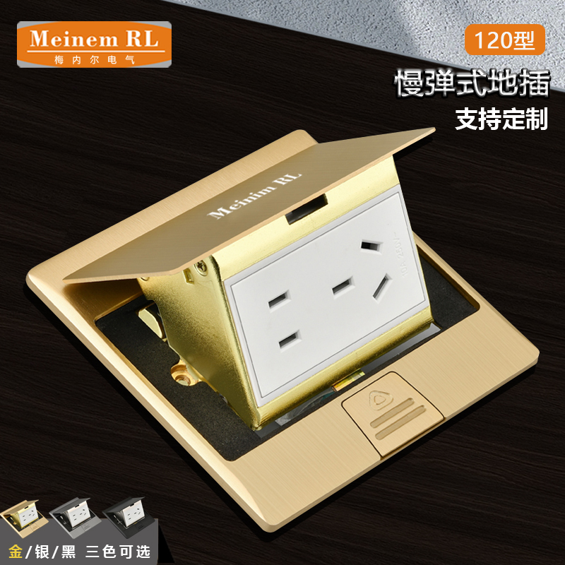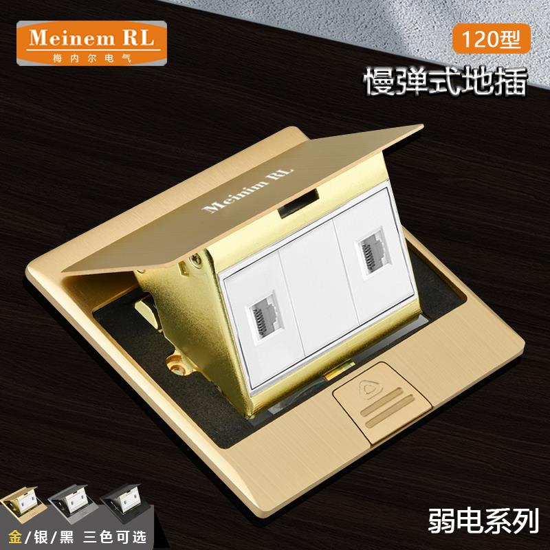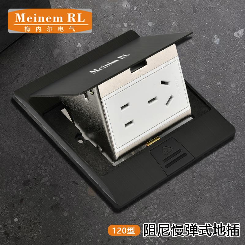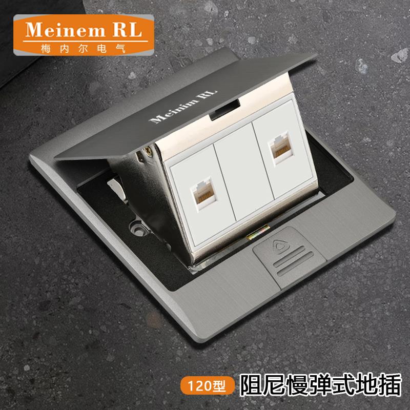 隐藏地插座超薄防水弹起式地插座灰色慢弹带阻尼地板地面网络插座