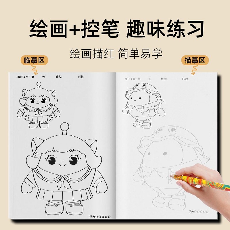蛋仔盲盒女孩描摹绘画本儿童涂色基础人门描红临摹画册描红素描线稿动漫卡通画画本幼儿园小学生手绘画本派对