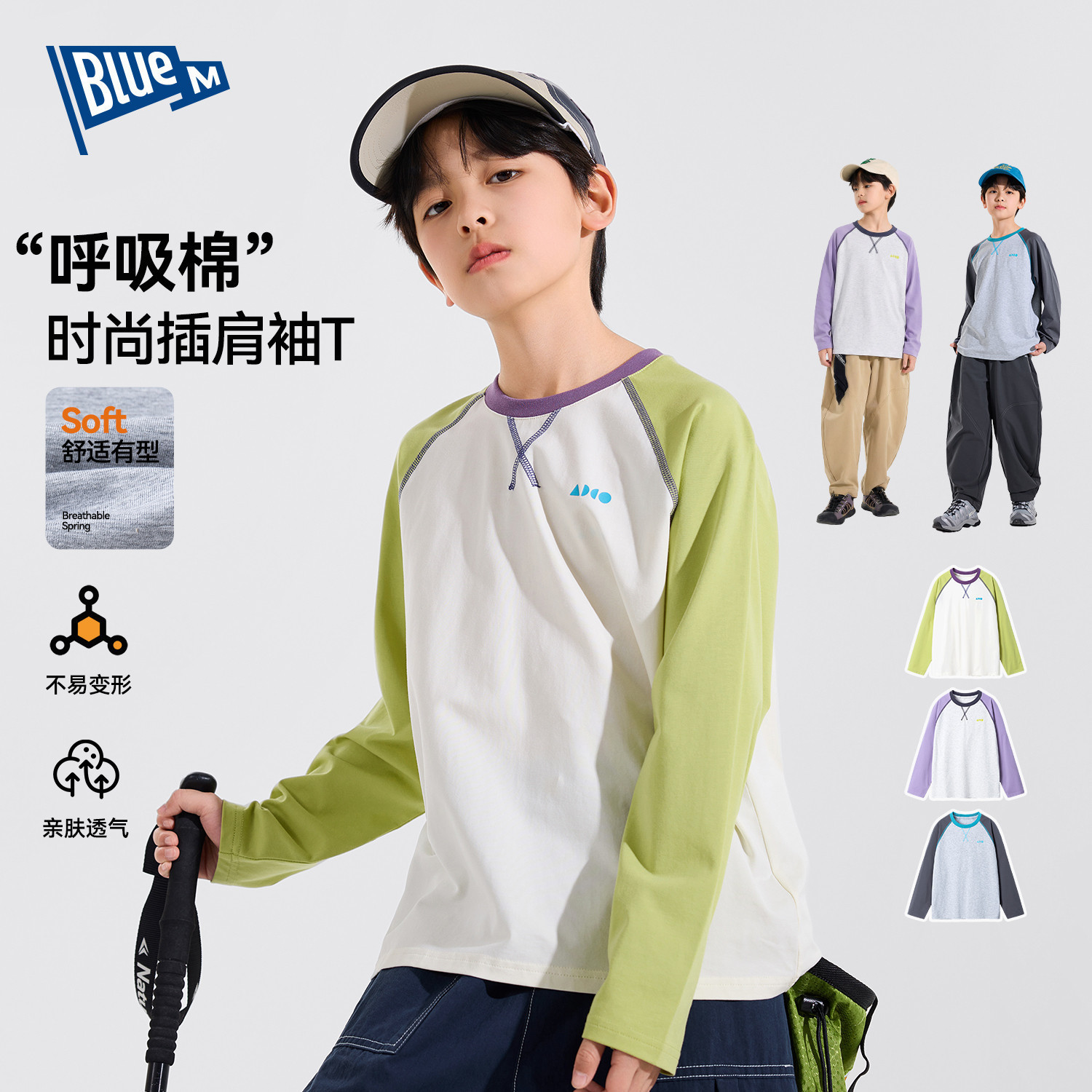 Bluem儿童T恤长袖男童上衣春秋新款男孩衣服中大童打底衫内搭时尚