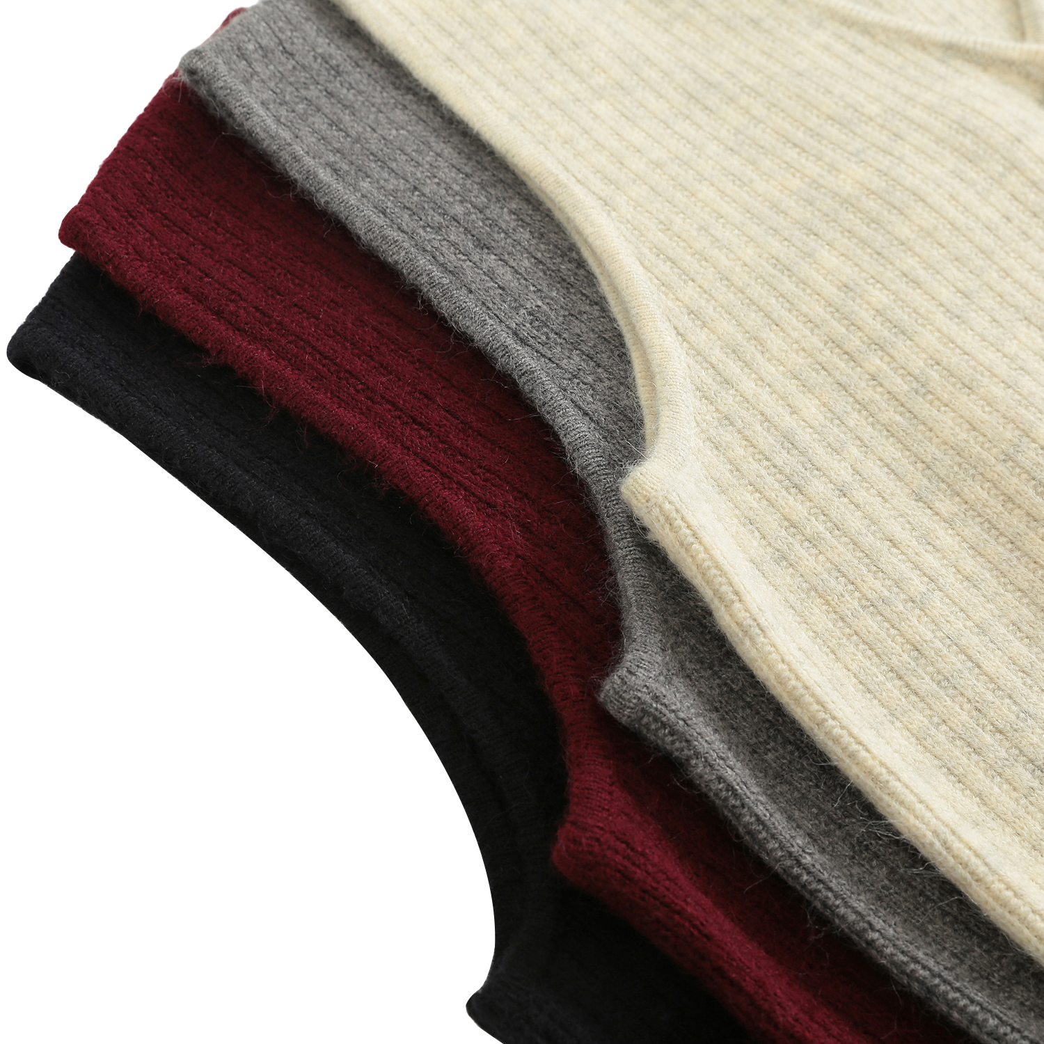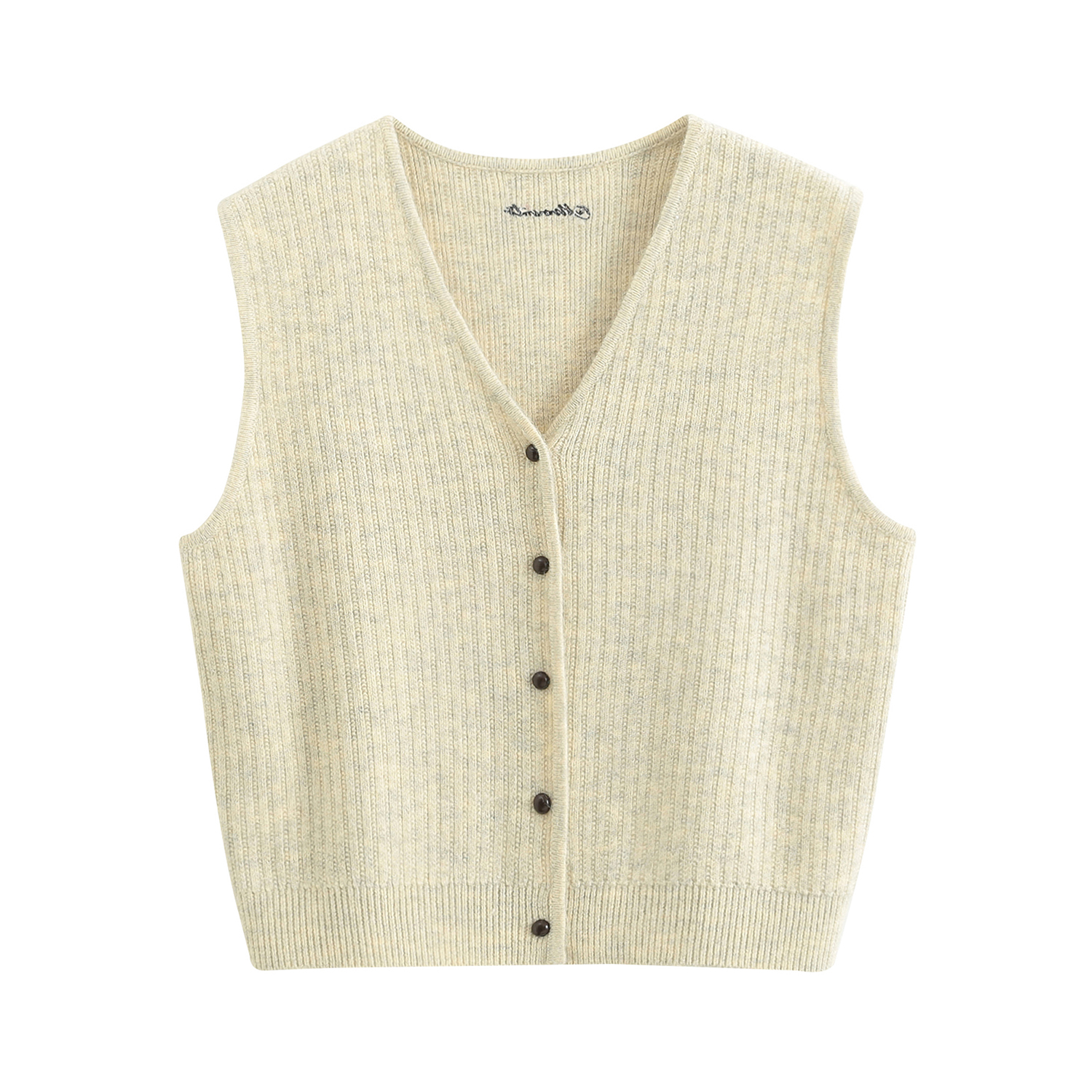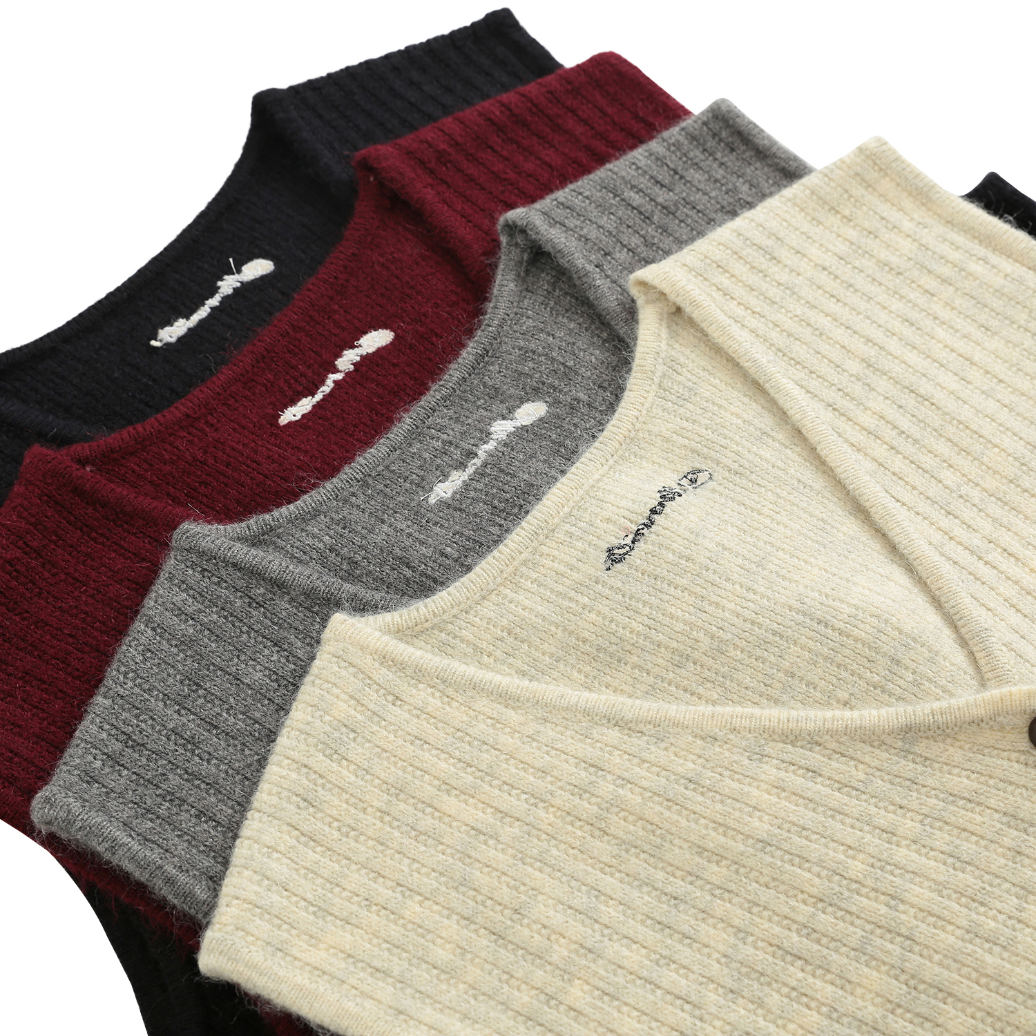 BAO STUDIO韩系极简ins后领刺绣V领无袖针织背心外搭叠穿开衫马甲