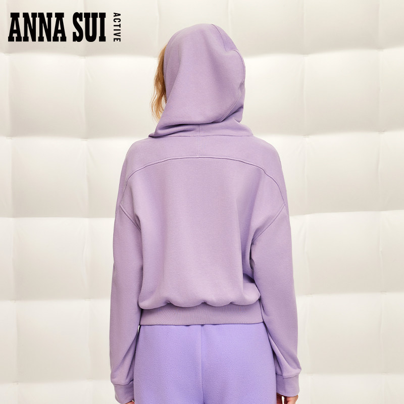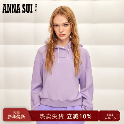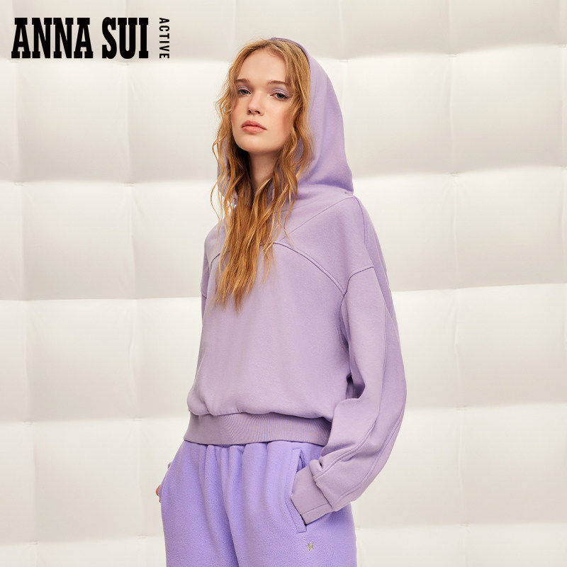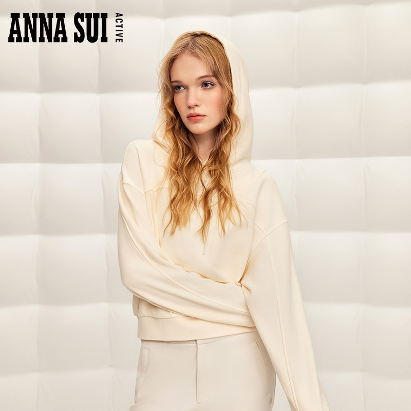ANNA SUI安娜苏运动 经典安娜系列 抽绳连帽针织卫衣拼接套头衫