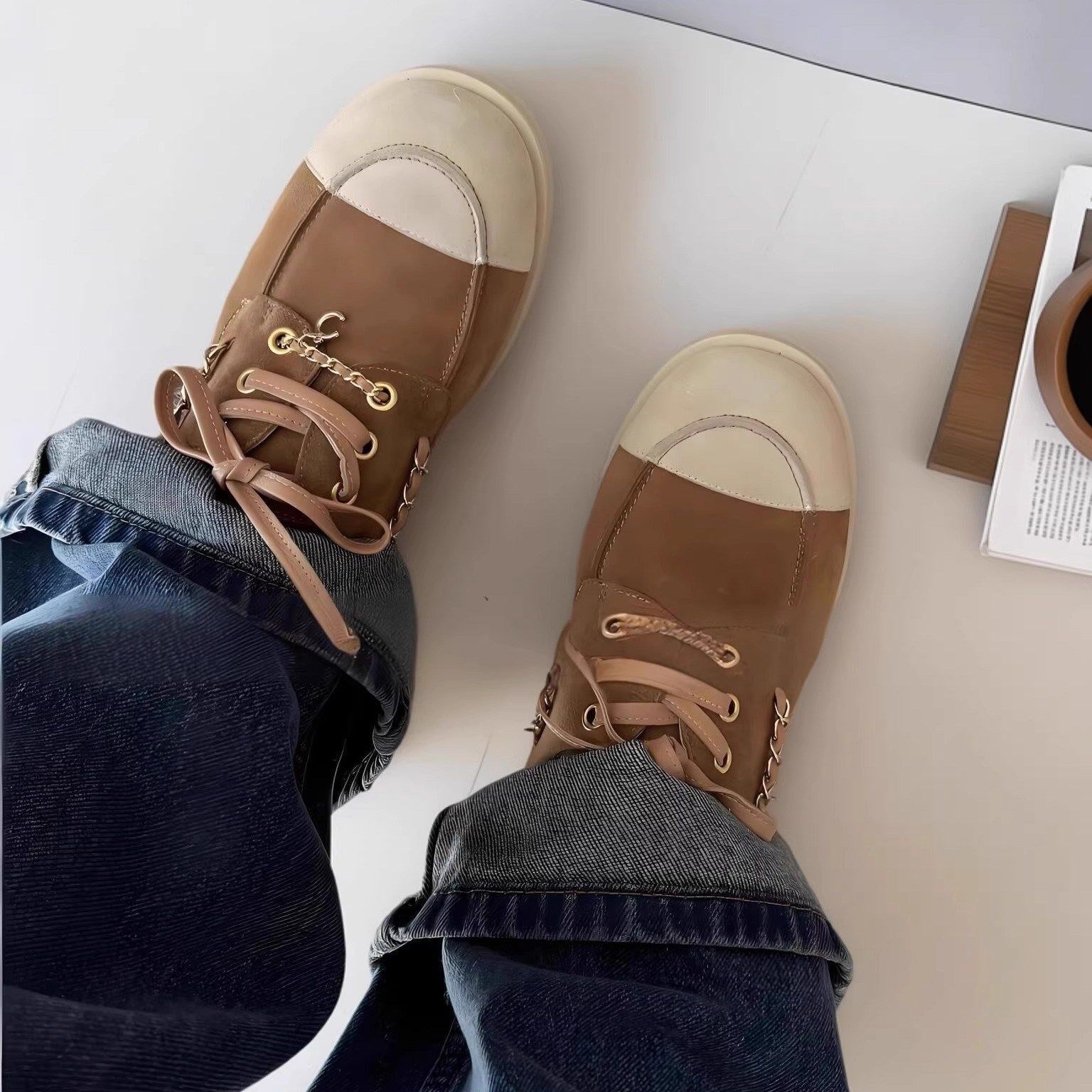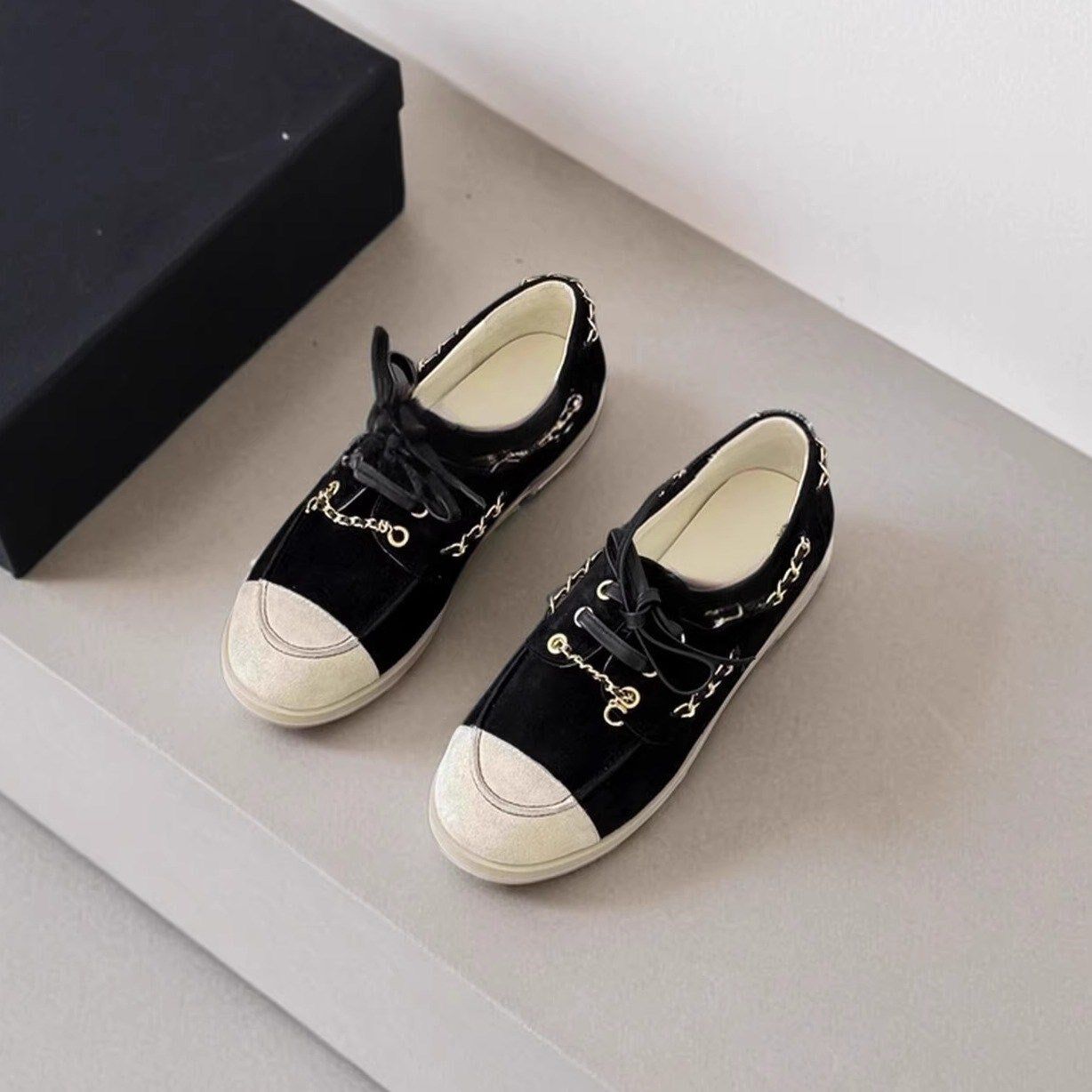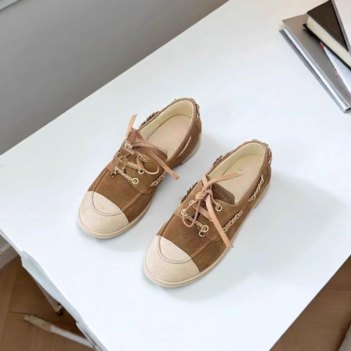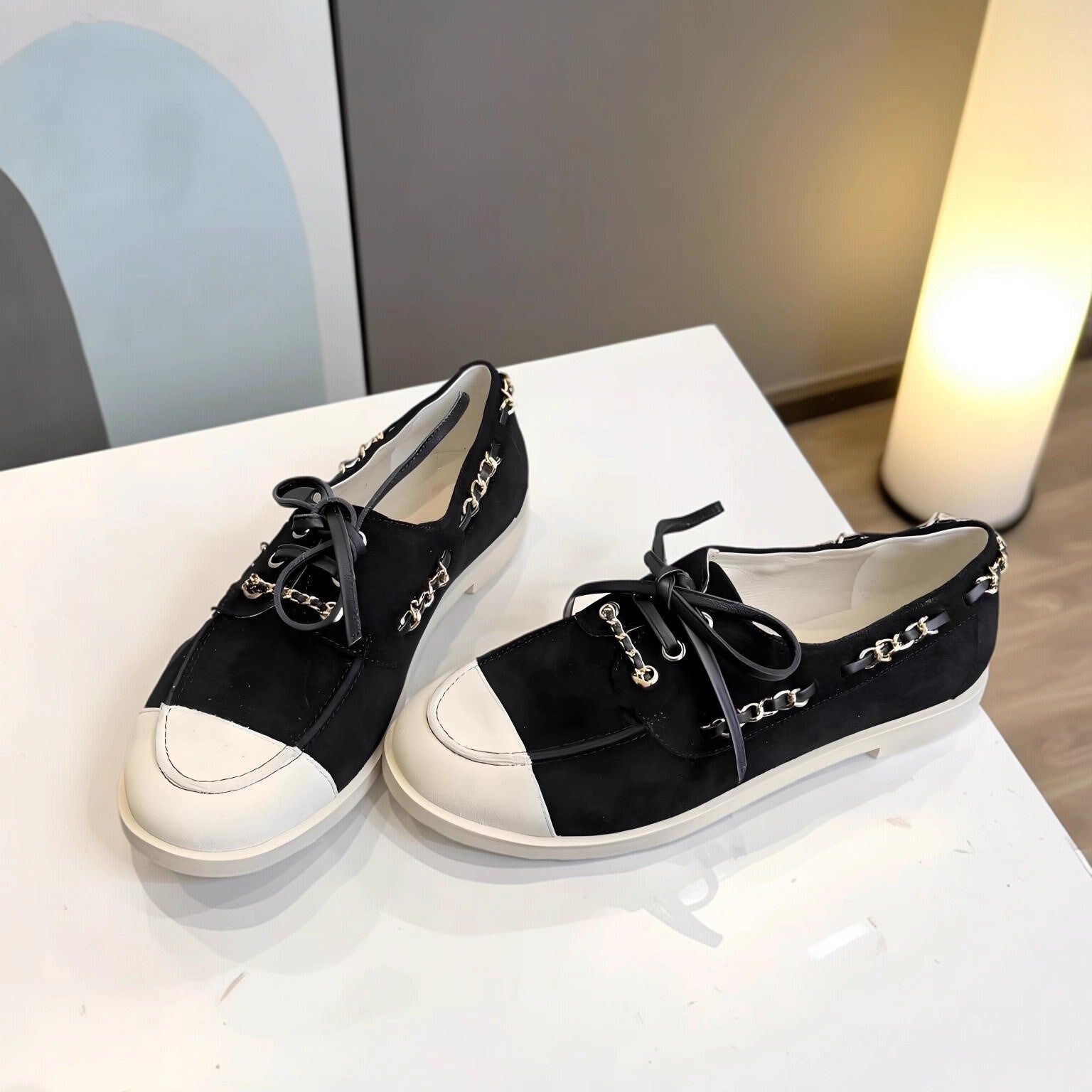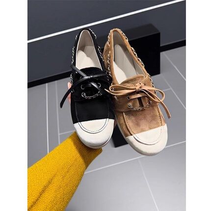巨好看2026春季小香风麂皮乐福鞋女平底链条拼色系带休闲百搭单鞋