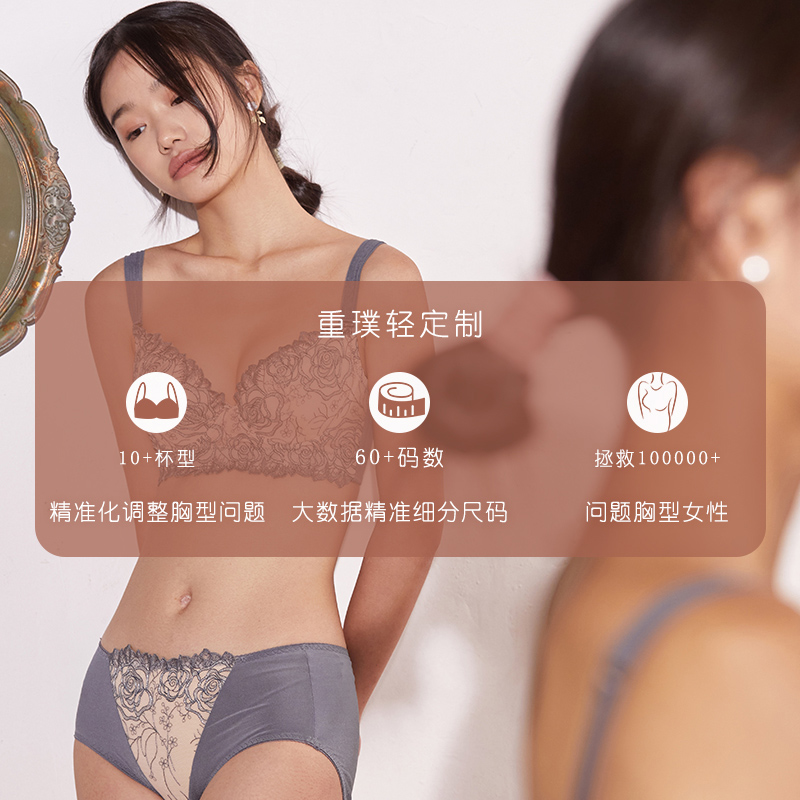 重璞内衣女聚拢薄款调整型文胸收副乳防下垂大码大胸显小|青花瓷