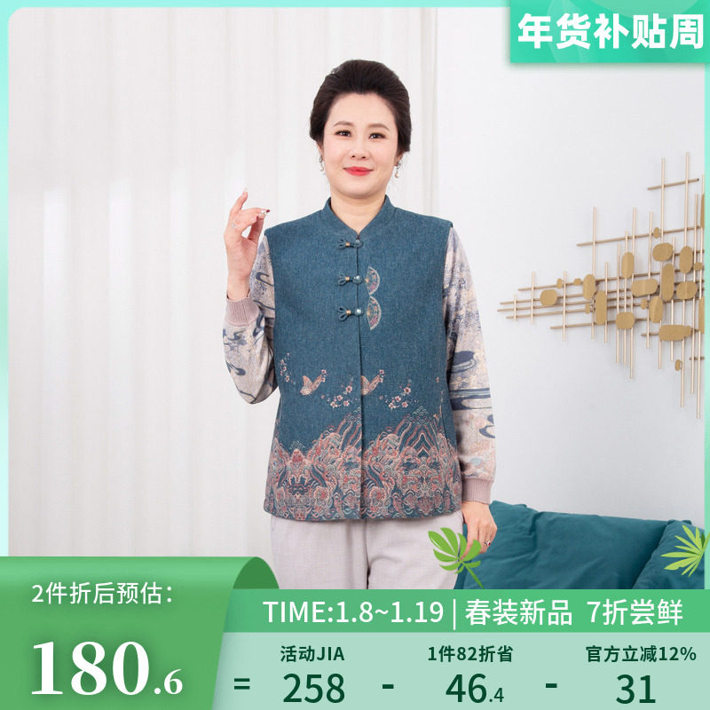 依佈中老年女士新中式马夹2026春装新款防风背心老年人妈妈装上衣