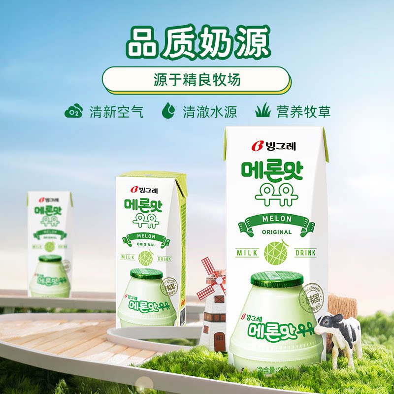 【整箱24盒】宾格瑞哈密瓜味牛奶韩国原装进口果味奶早餐奶200ml