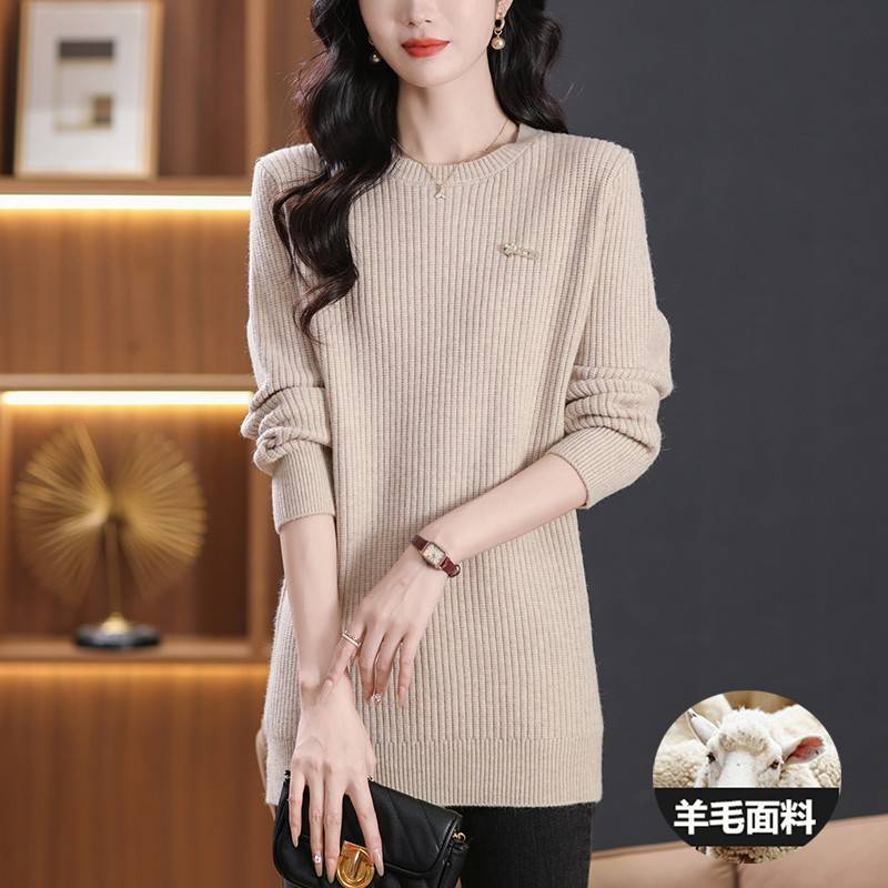 洋气大码宽松200斤毛衣女秋冬季羊毛针织打底衫中长款遮屁股上衣