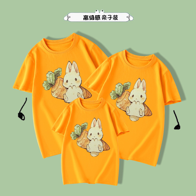 胡萝卜小兔子新款纯棉T恤儿童可爱亲子装夏季短袖母女父子情侣装