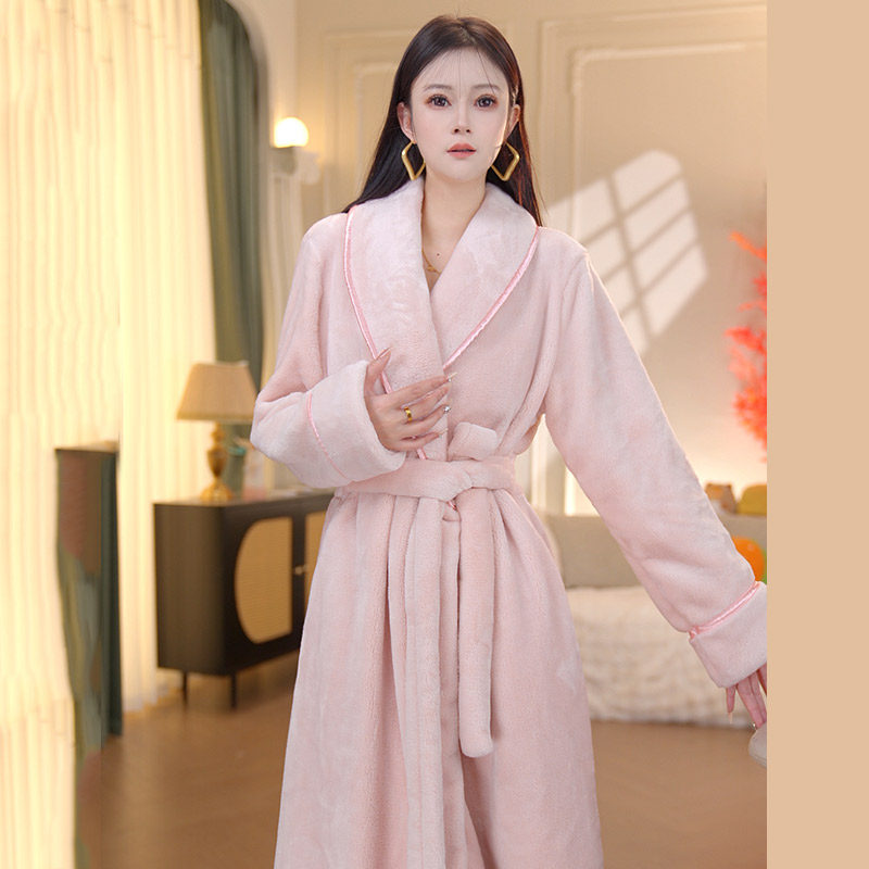 巨保暖 睡袍女冬季新款法兰绒加绒加厚收腰牛奶绒浴袍长款家居服
