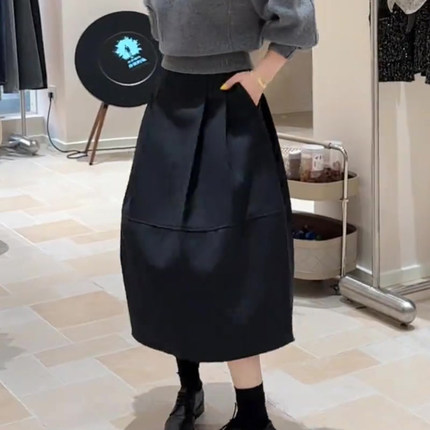 欧货高端定制黑色大码半身裙女2026春夏新款小个子气质西装花苞裙