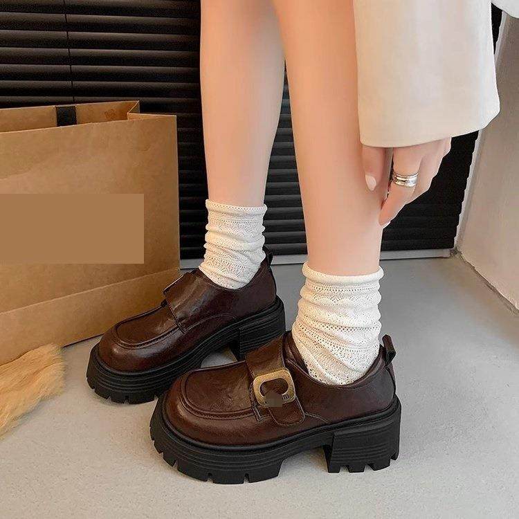 圆头法式英伦风小皮鞋女2025秋季新款厚底日系jk增高配裙子乐福鞋