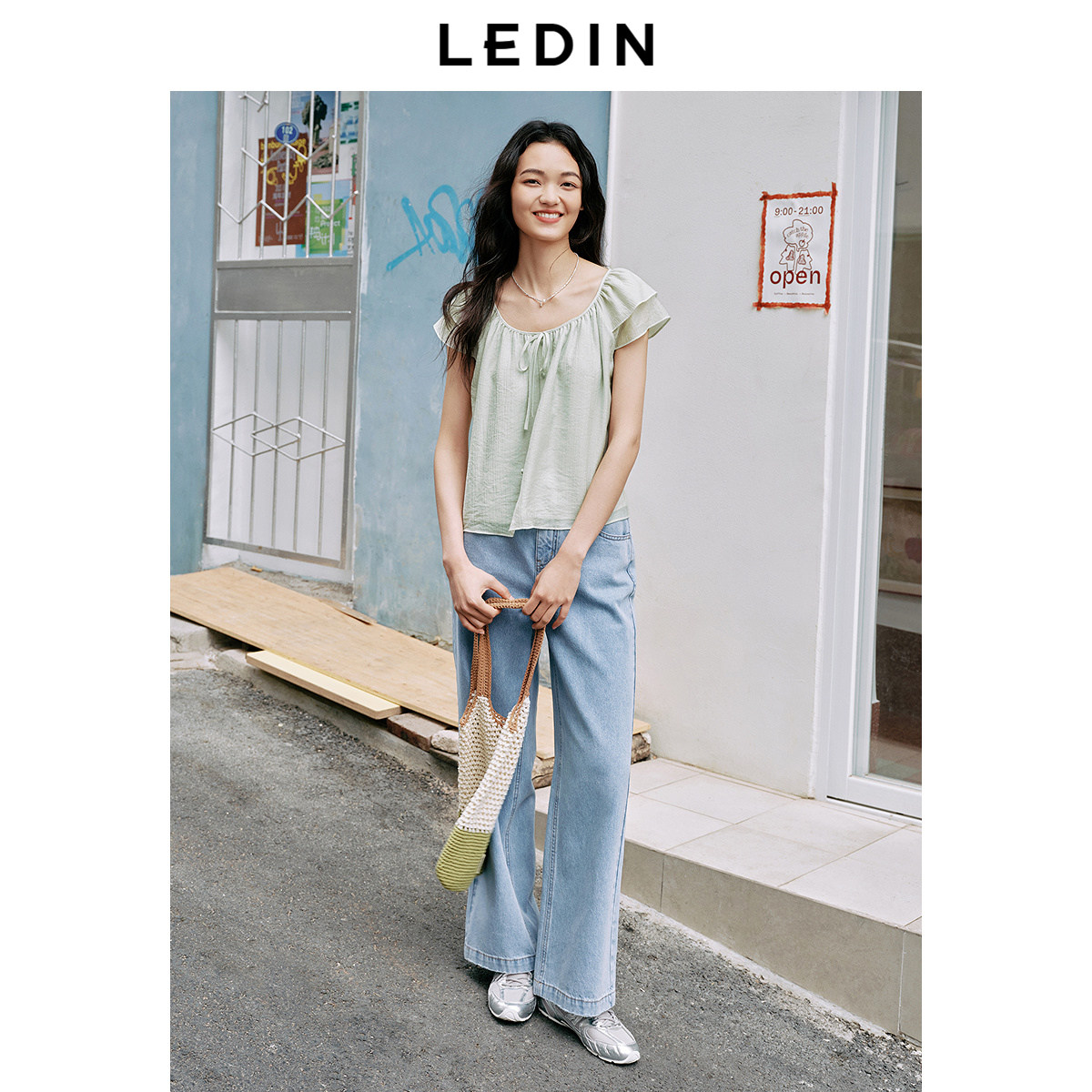 乐町韩系甜美小飞袖雪纺衫2025年夏季新款领口绑带设计短袖上衣