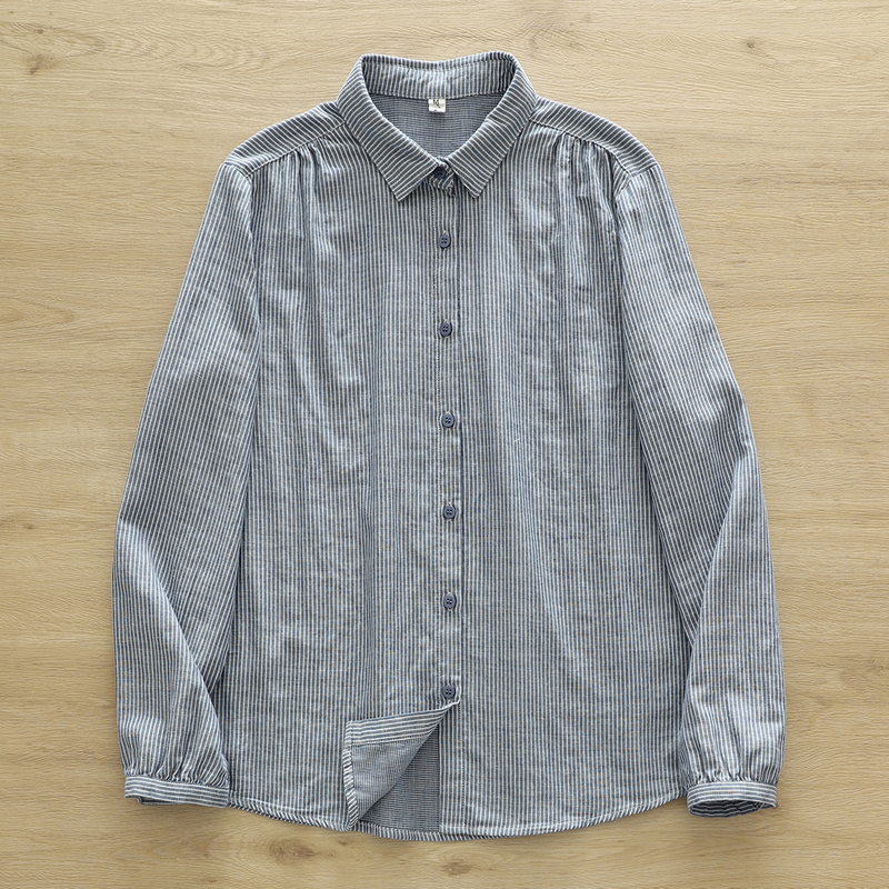 双层棉纱条纹长袖衬衫女宽松百搭2025春季新款纯棉柔软女士衬衣