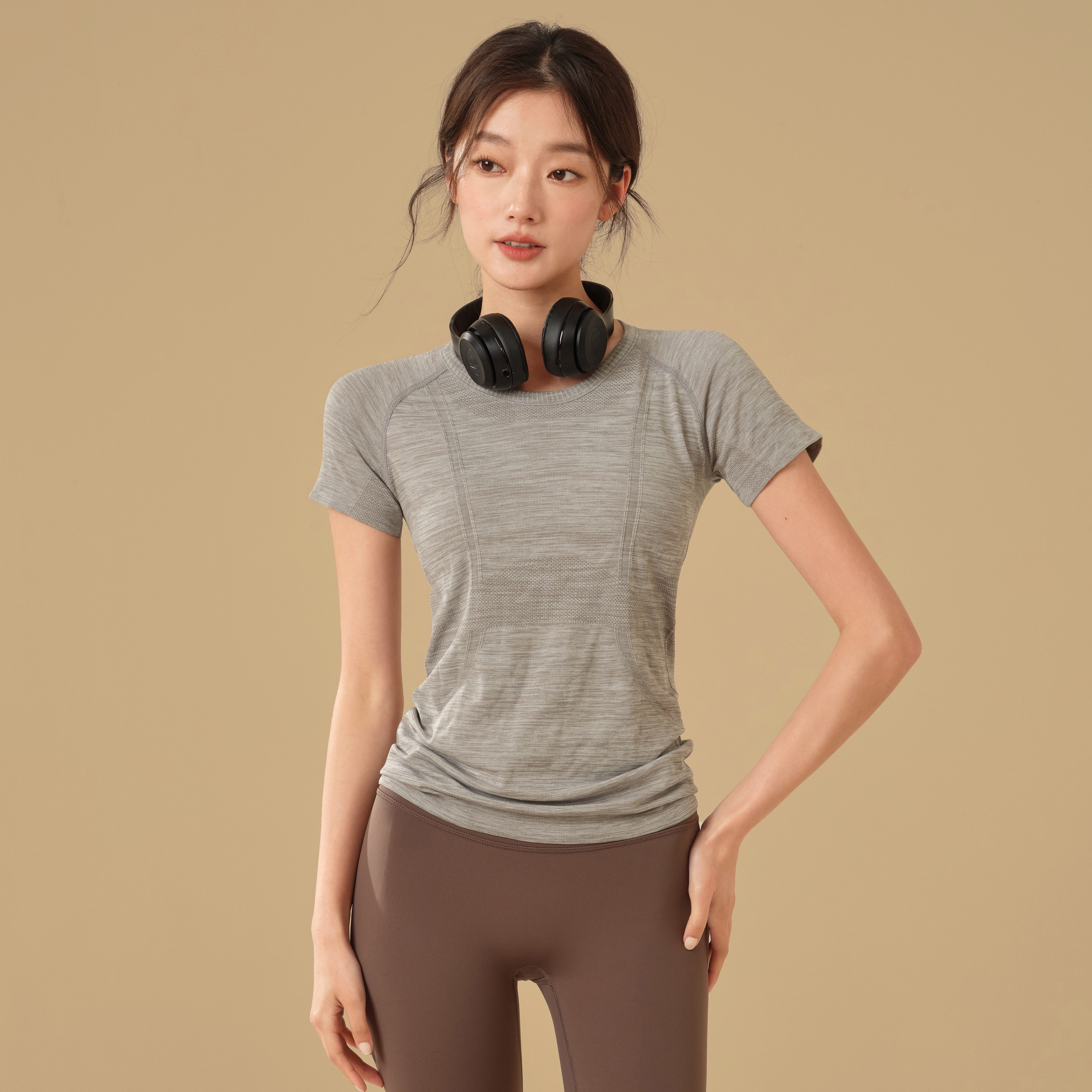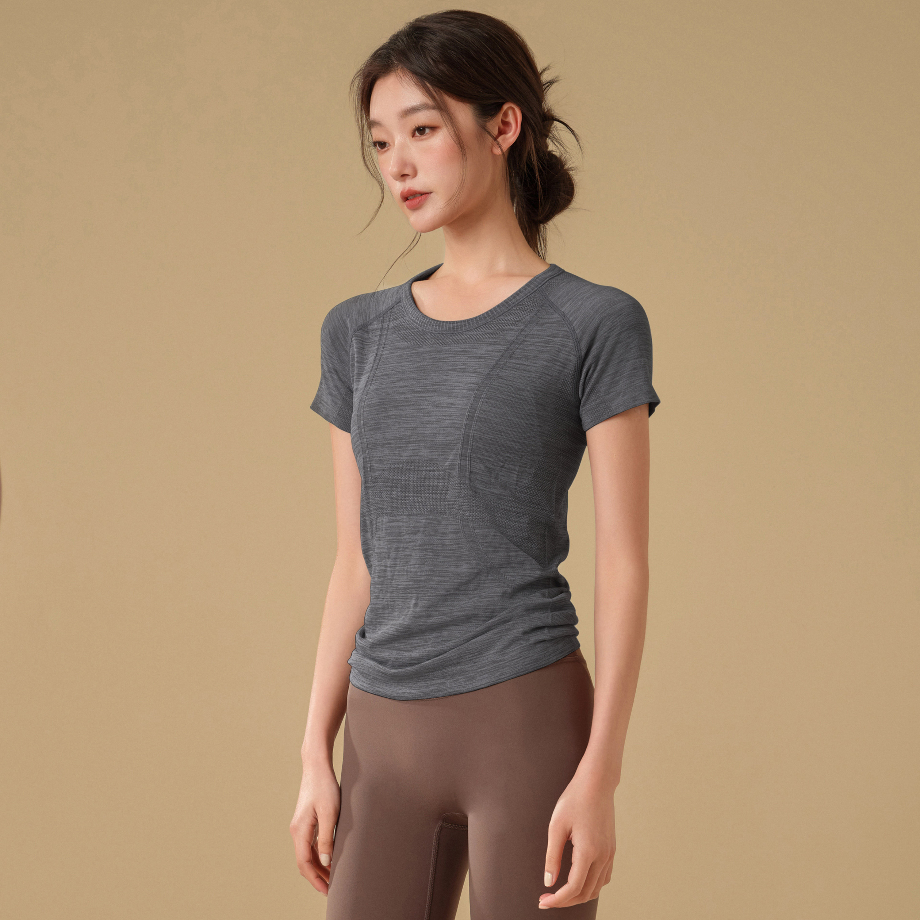岚纹瑜伽服短袖圆领速干运动上衣