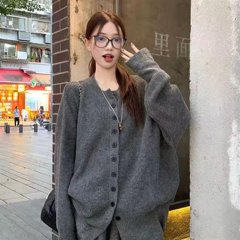 高级感慵懒风穿搭针织套装女秋冬新款显瘦半身短裙毛衣开衫两件套