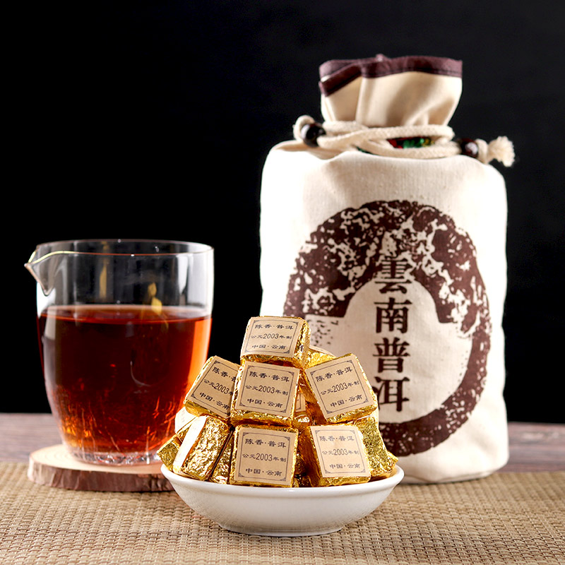 小金砖普洱茶 1000g陈年普洱茶熟茶小沱茶云南勐海老熟普十年以上