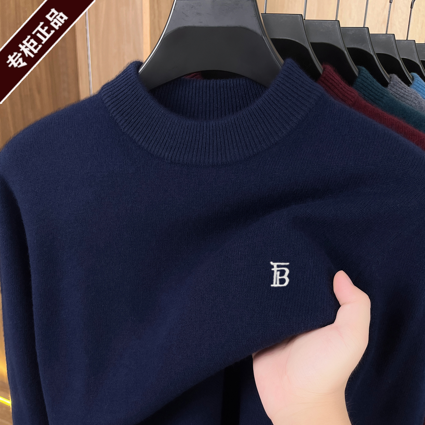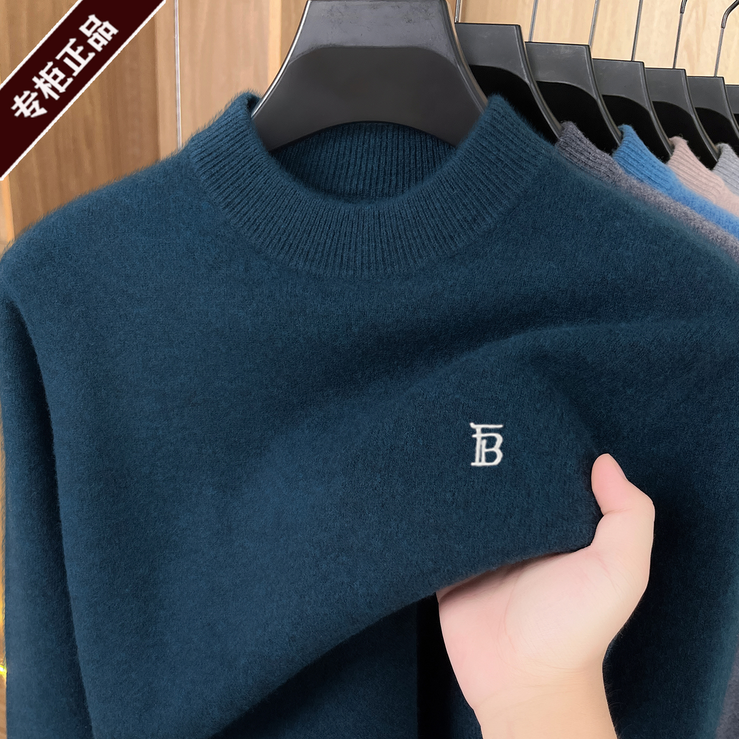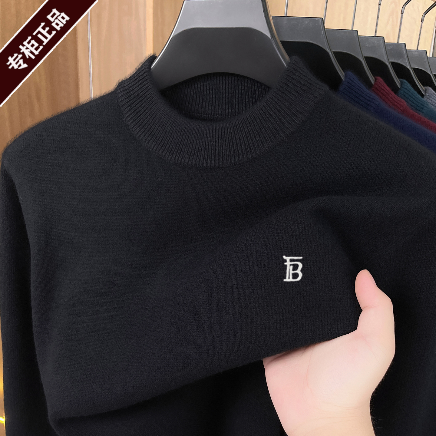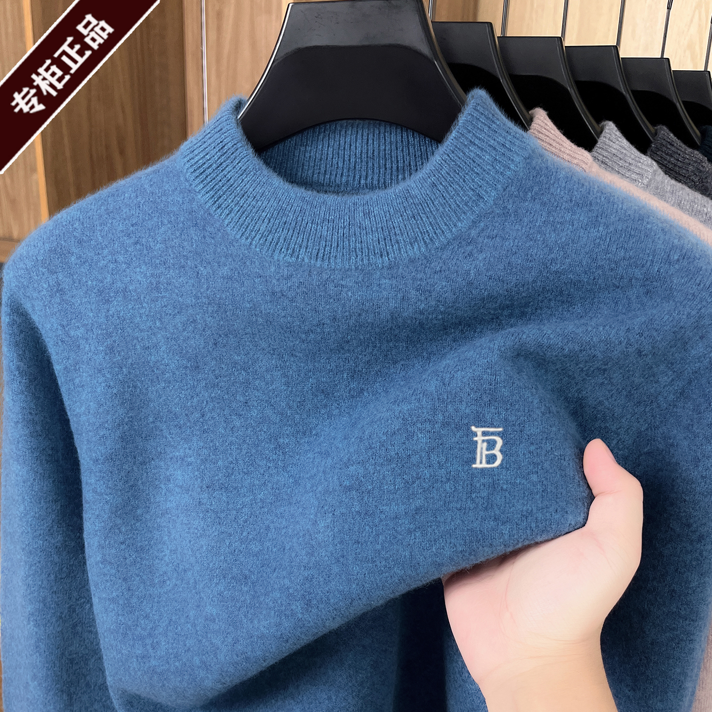 可机洗秋冬新款男士100%绵羊毛加厚打底衫高端半高领针织羊绒毛衣