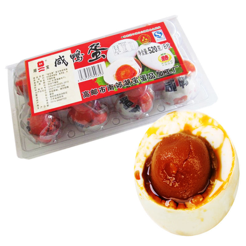 湖宝牌熟咸鸭蛋高邮咸鸭蛋流油咸蛋65克8只吸塑装520克多省包邮