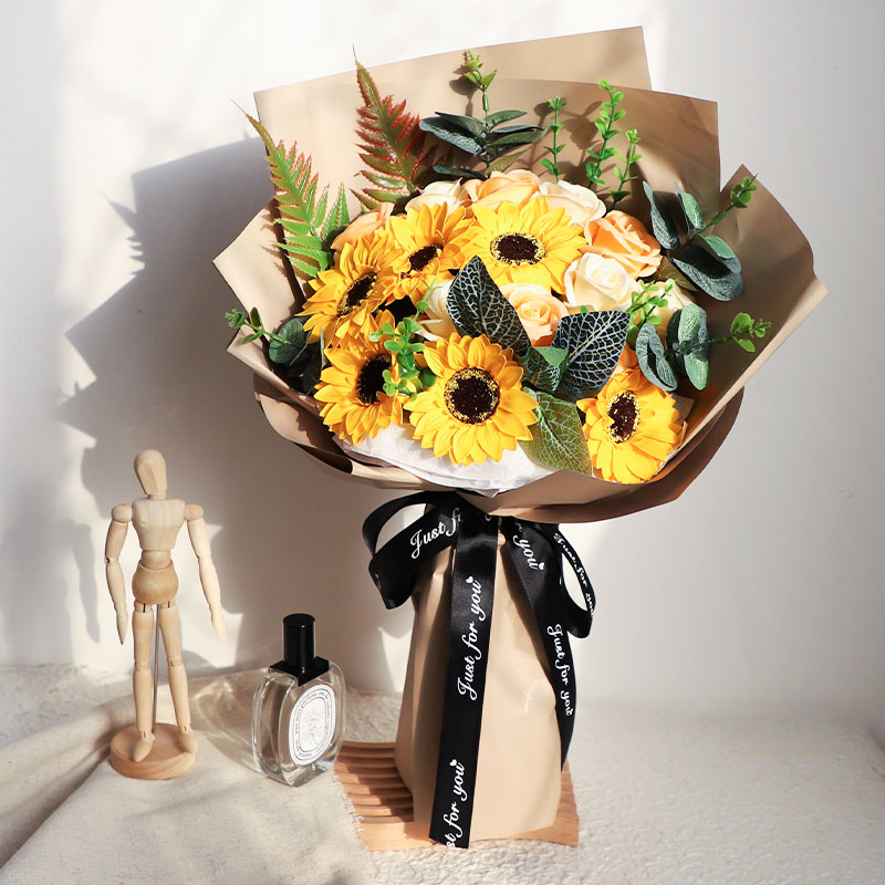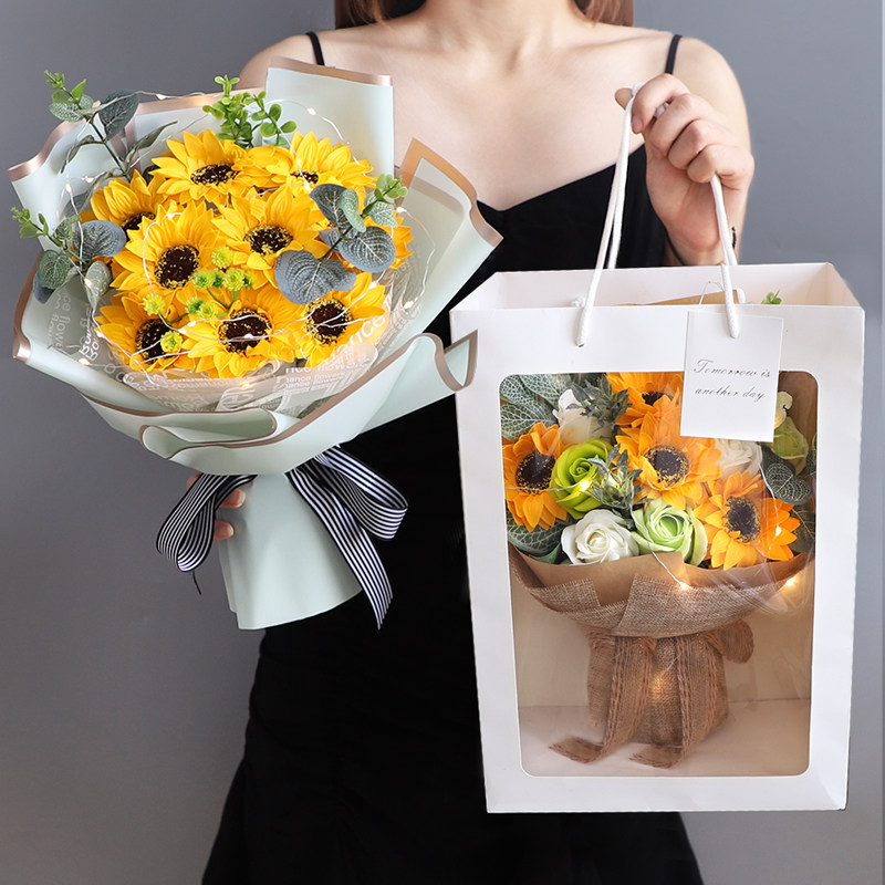 成人礼毕业礼物向日葵拍照仿真花花束高考玫瑰送女友男生生日干花