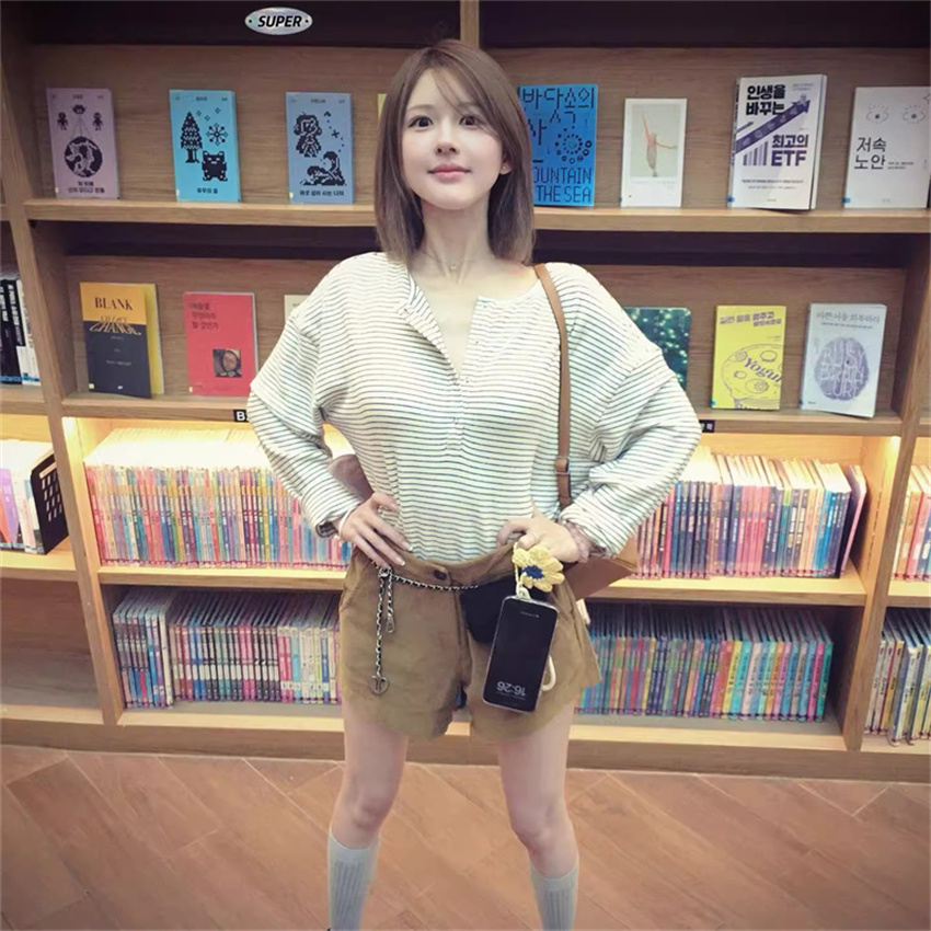 赵露思同款 韩范女装2025秋季新款简约休闲灯芯绒条绒休闲短裤潮