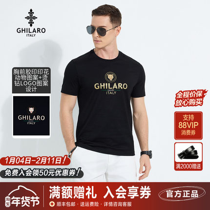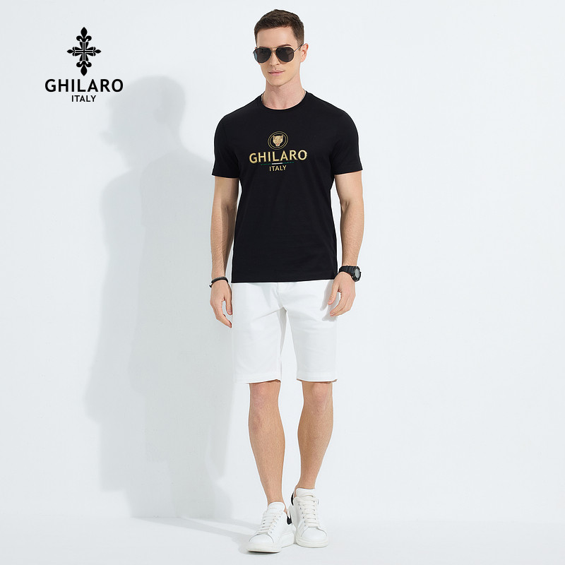 雷迪波尔旗下品牌古劳吉那诺2025夏季新款男士圆领纯棉薄短袖T恤