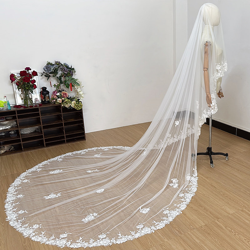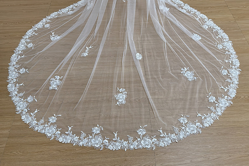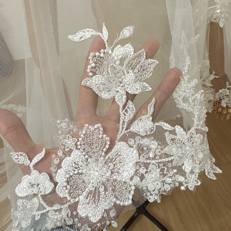 新娘结婚精致高端重工钉珠奢华蕾丝边头纱婚礼主婚纱头饰定制