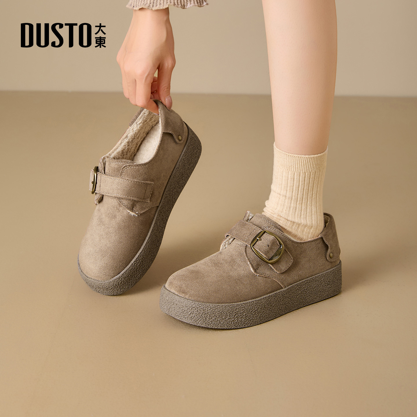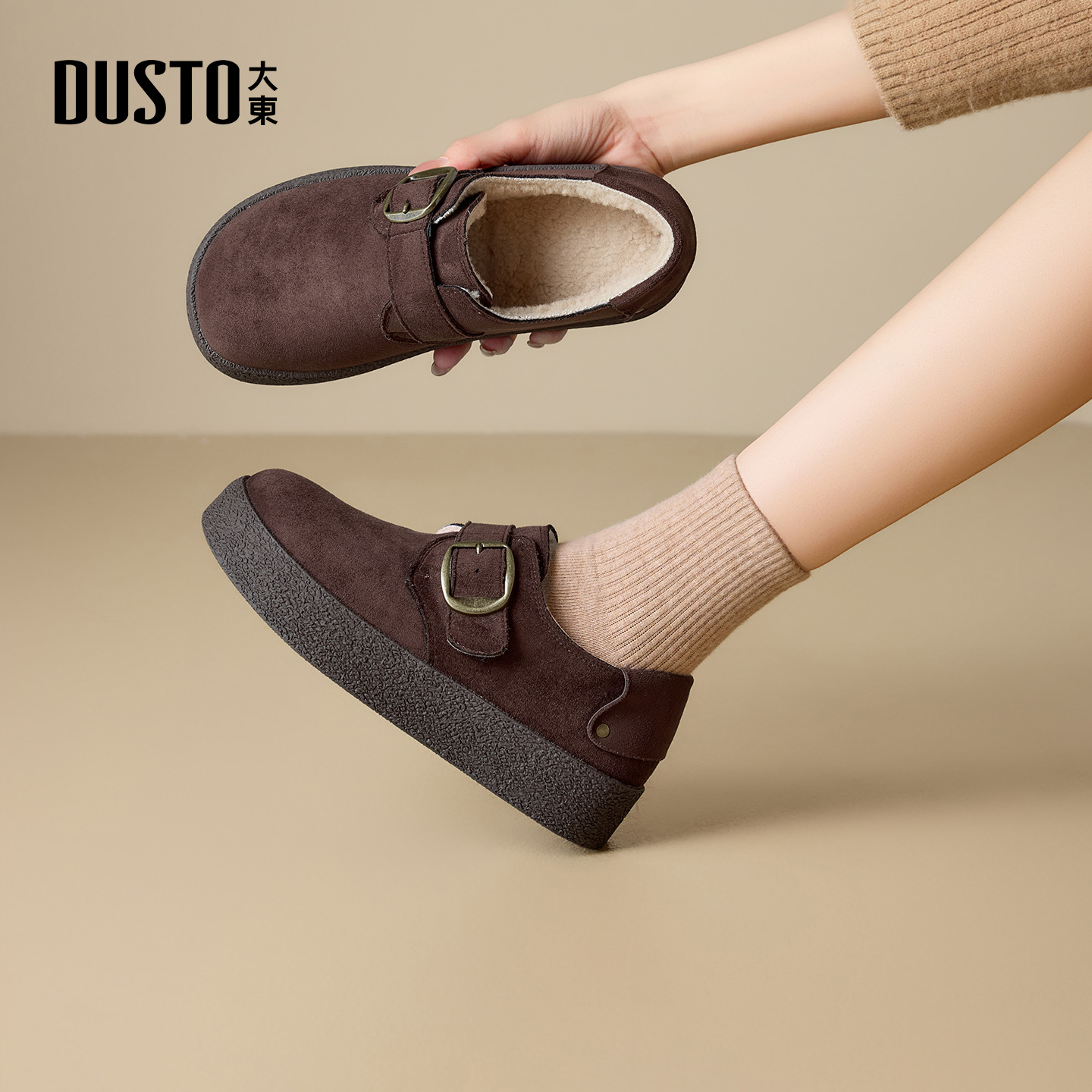 大东女鞋勃肯鞋2025冬季新款加绒女短靴一脚蹬保暖棉鞋圆头雪地靴