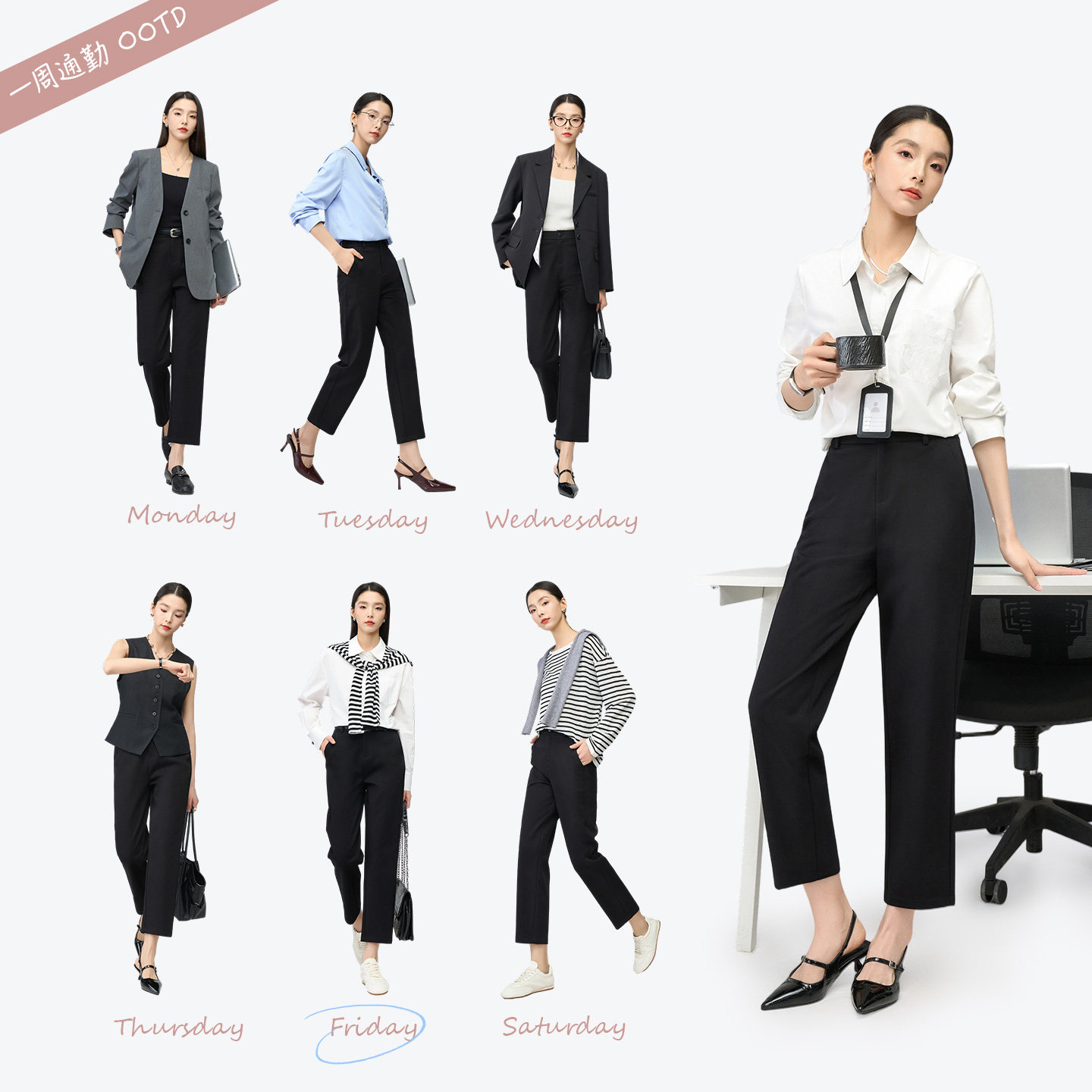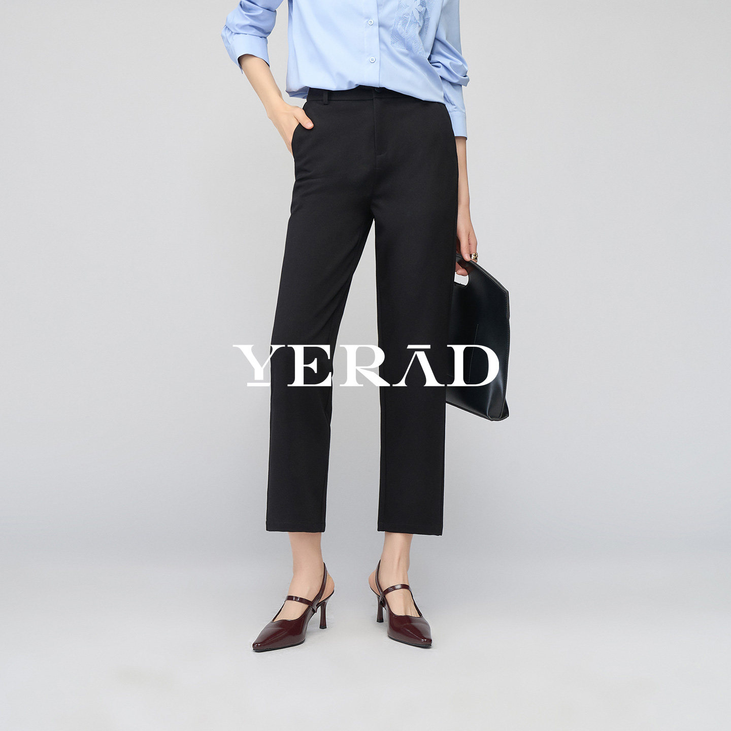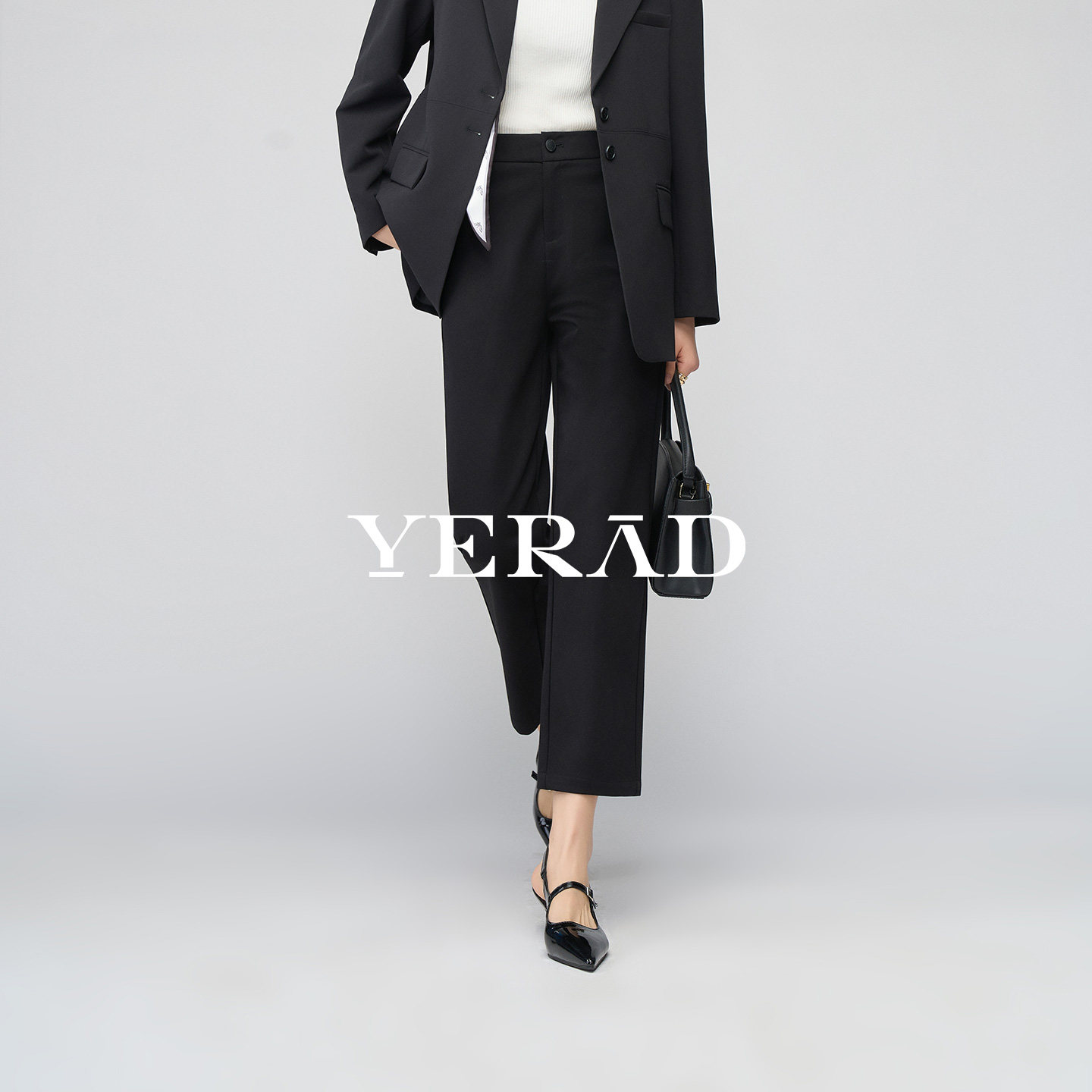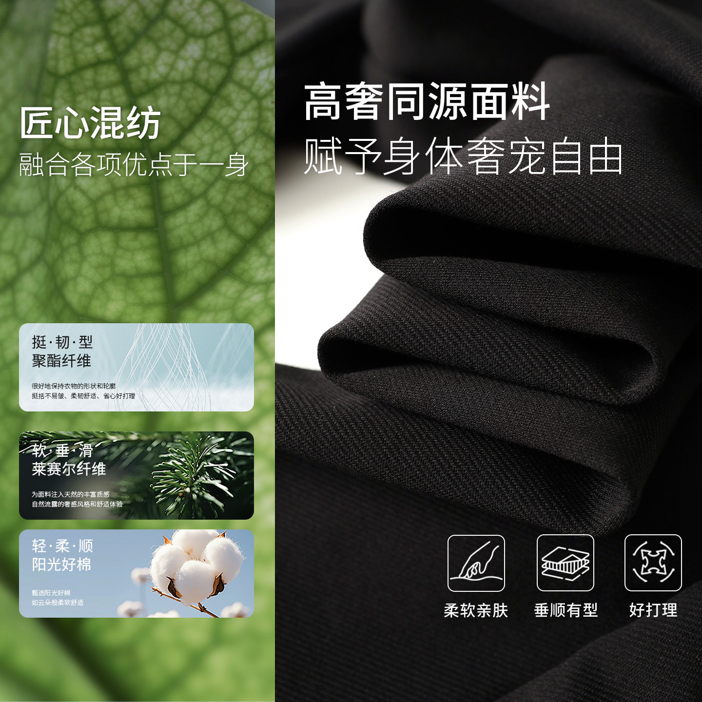 娅丽达莱赛尔棉直筒裤女2026春新款休闲裤西装裤子黑色九分烟管裤
