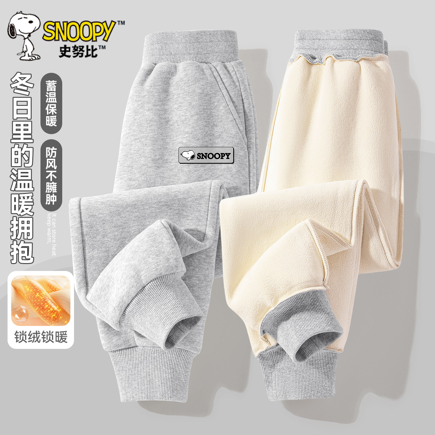 史努比男童加厚绒裤子2026新款冬装儿童一体绒卫裤男孩冬季运动裤