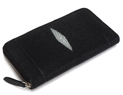 新款大珠女士珍珠鱼皮钱包真皮长款女款皮包双单拉链钱包