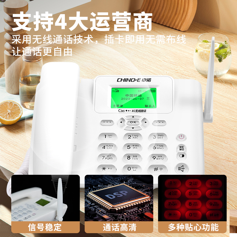 中诺C265插卡电话机移动联通电信广电4G5G无线手机卡办公室座机25