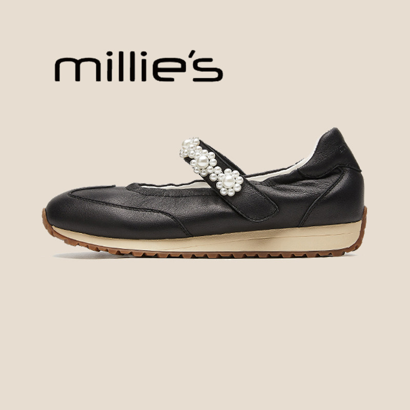 MILLIE'S/妙丽内增高玛丽珍运动鞋女厚底休闲鞋一字扣珍珠单鞋夏