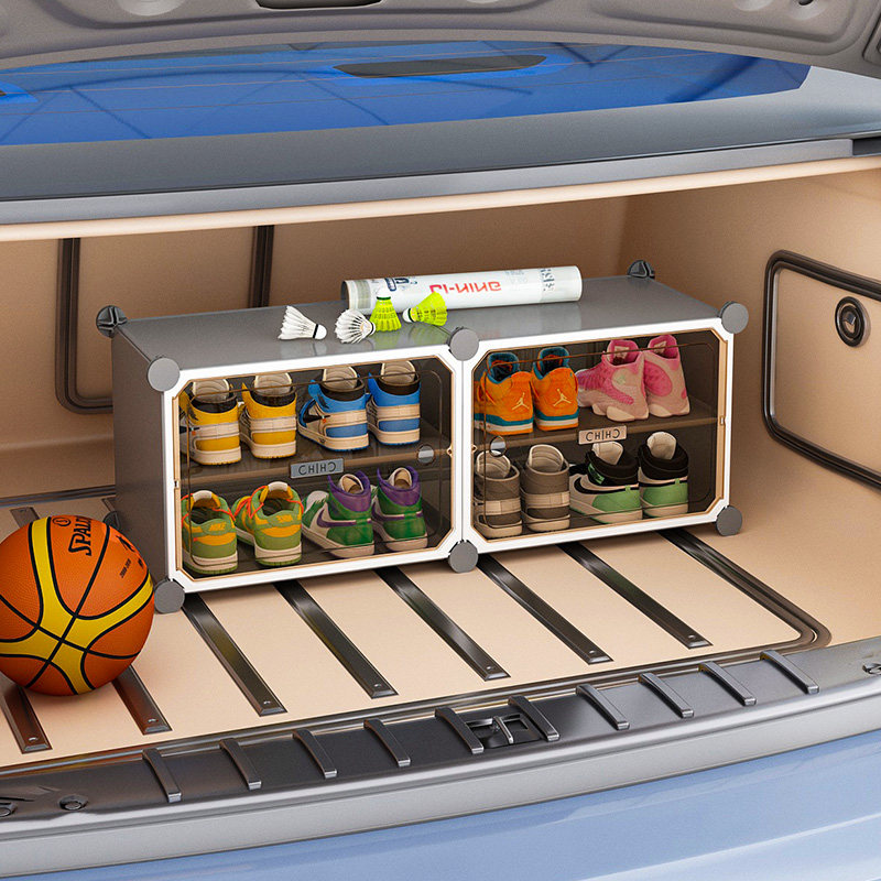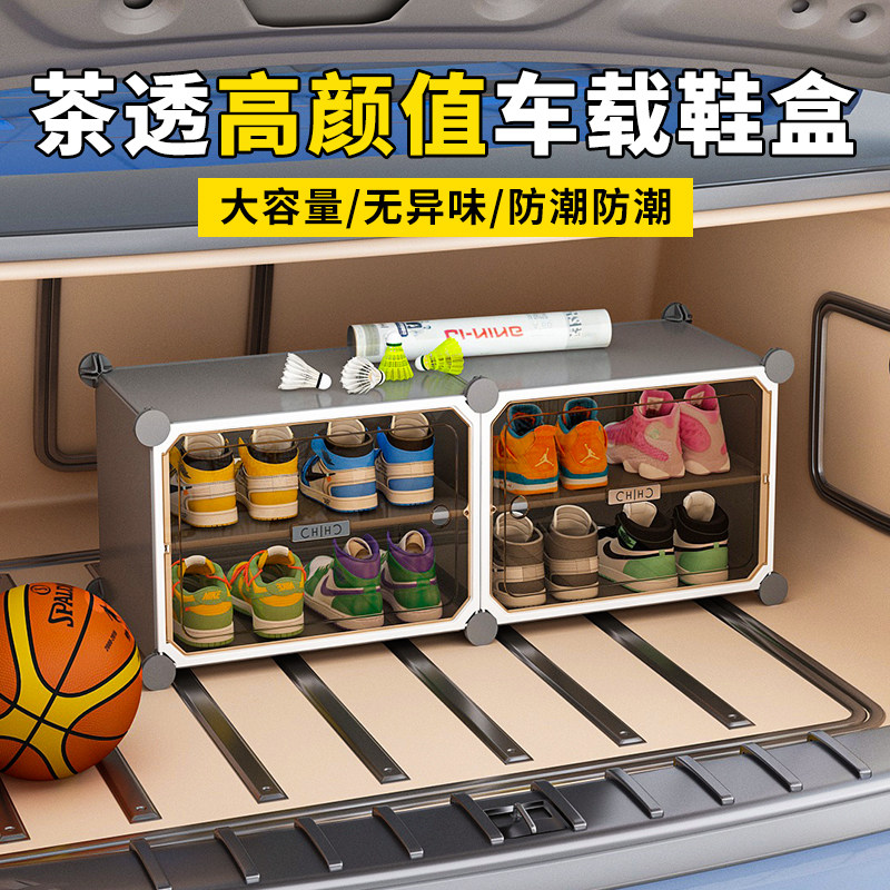 优选车载鞋盒汽车后备箱鞋子收纳神器家用塑料鞋T架存放球鞋透明