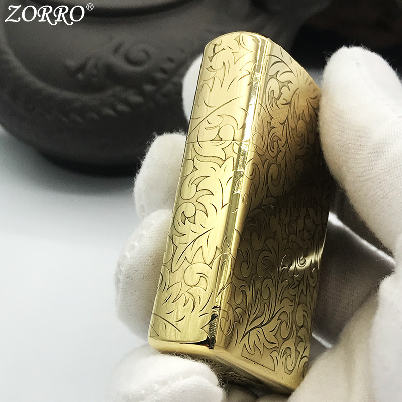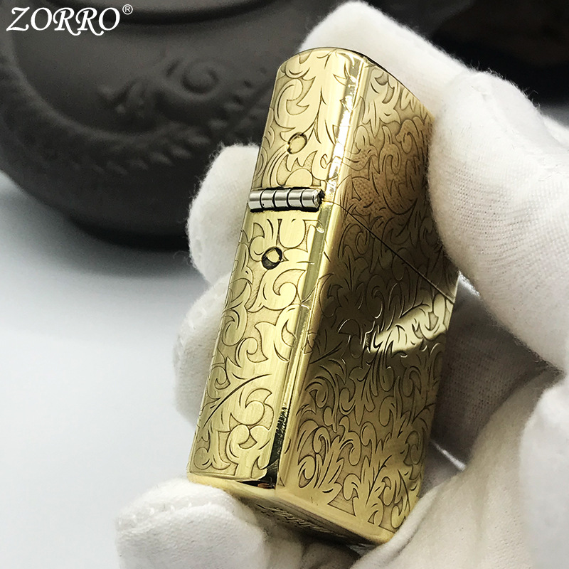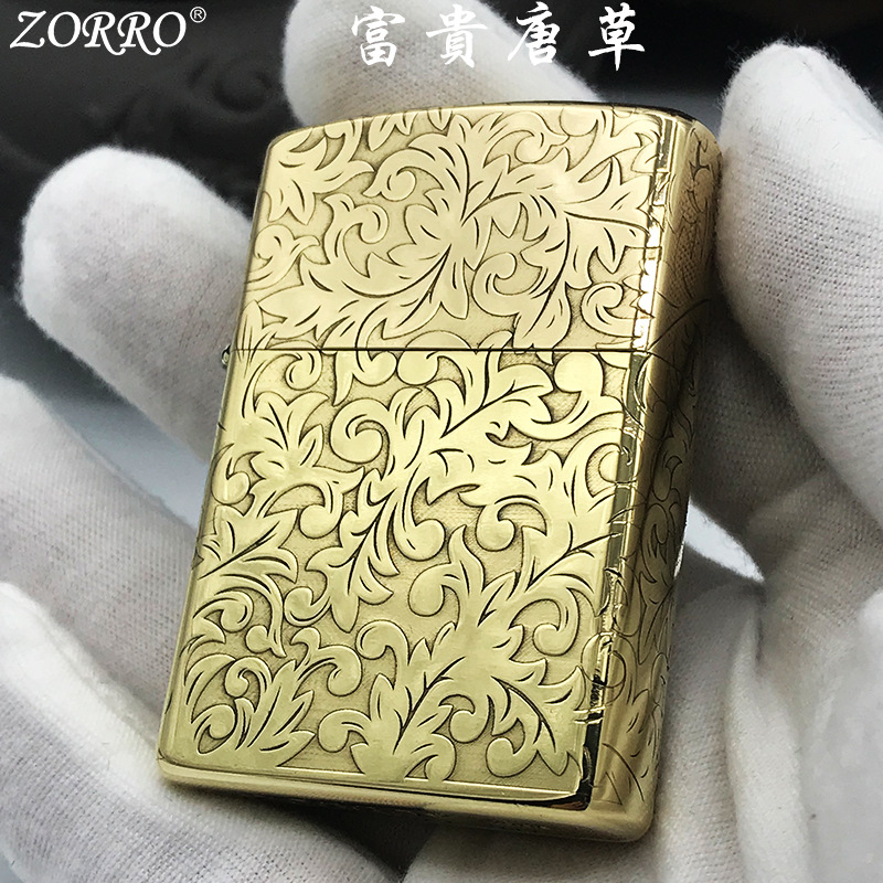ZORRO佐罗正品纯铜砂轮防风煤油打火机黄铜雕图腾经典富贵唐草花