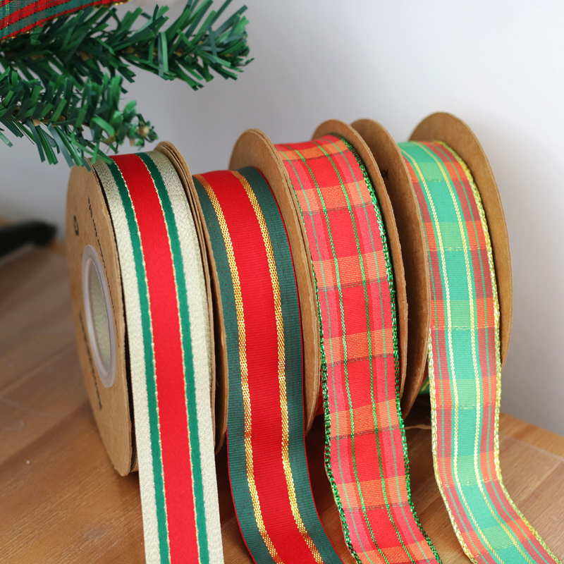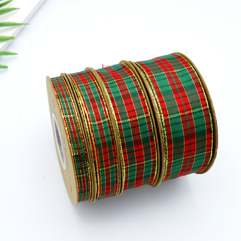 圣诞格子丝带节日装饰红绿金边织带蝴蝶结树diy新年礼物烘焙包装