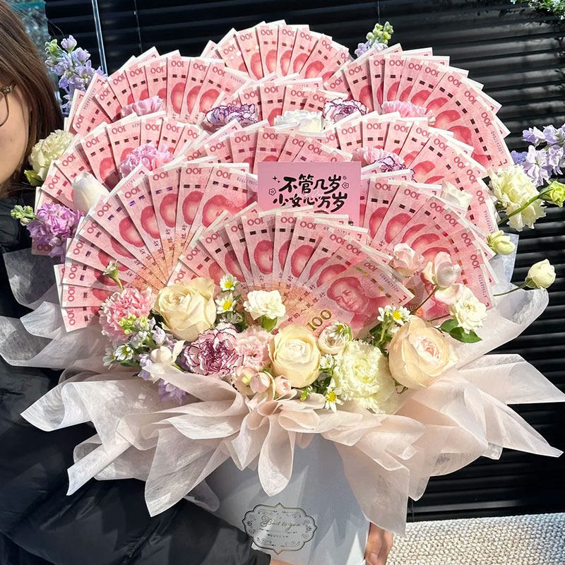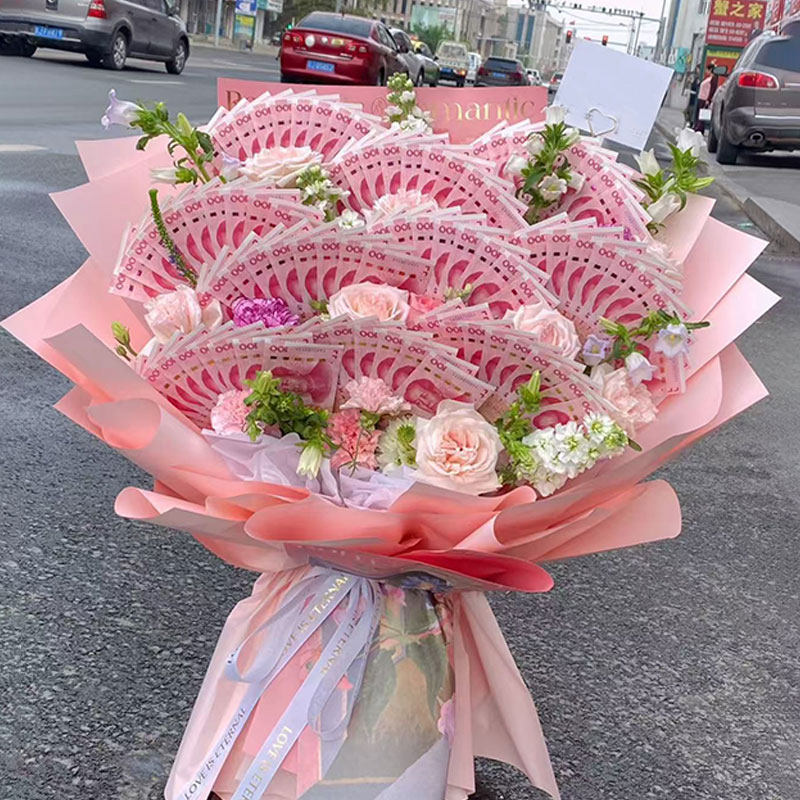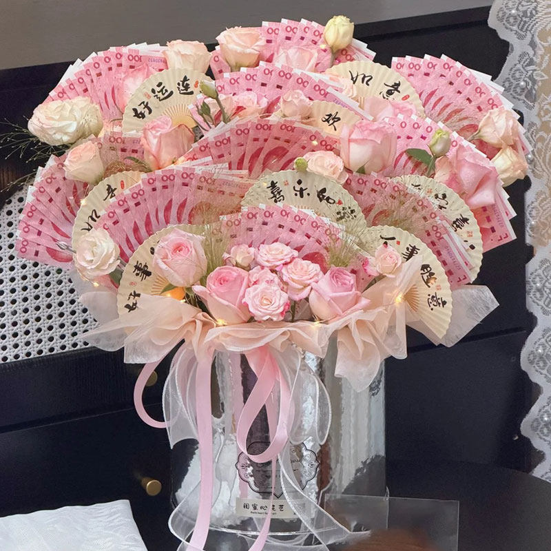 扇形有钱花束成品diy材料包半成品包装纸实用情人节礼物送女男友