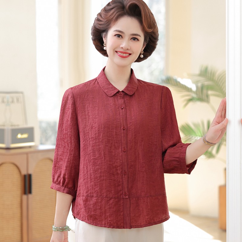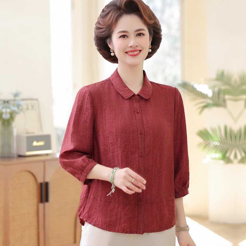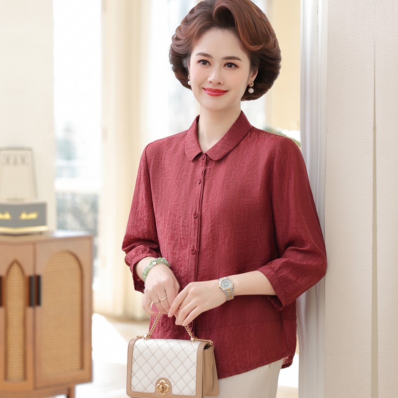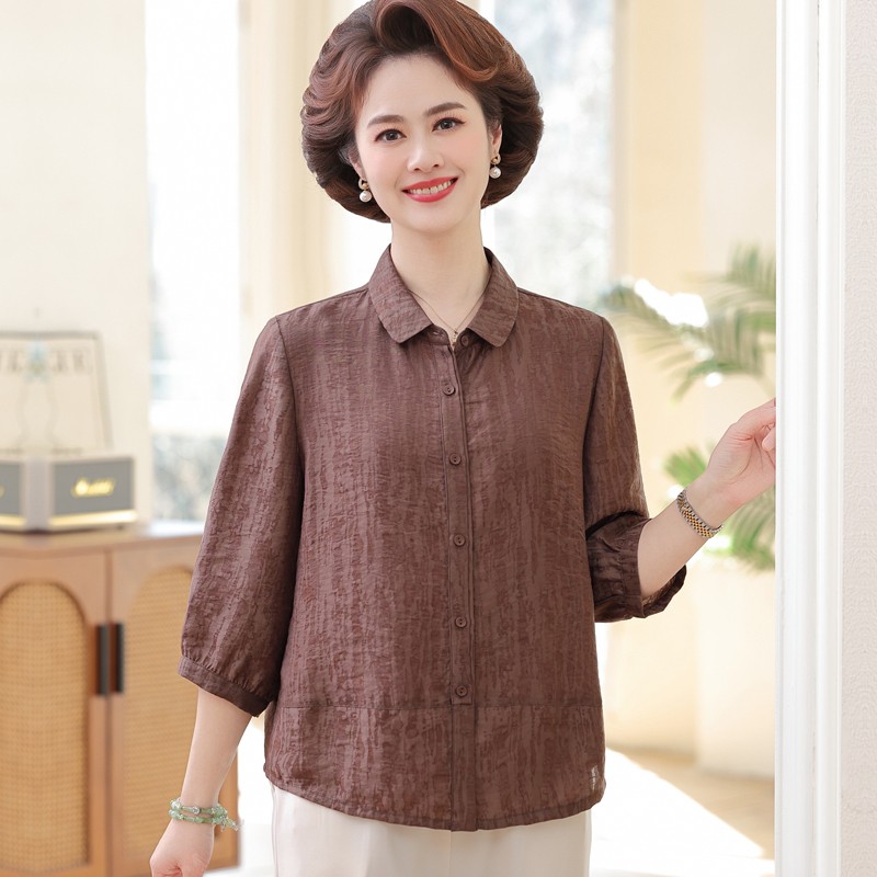 时尚妈妈真丝香云纱衬衫中年女洋气小衫中老年衬衣大码桑蚕丝上衣