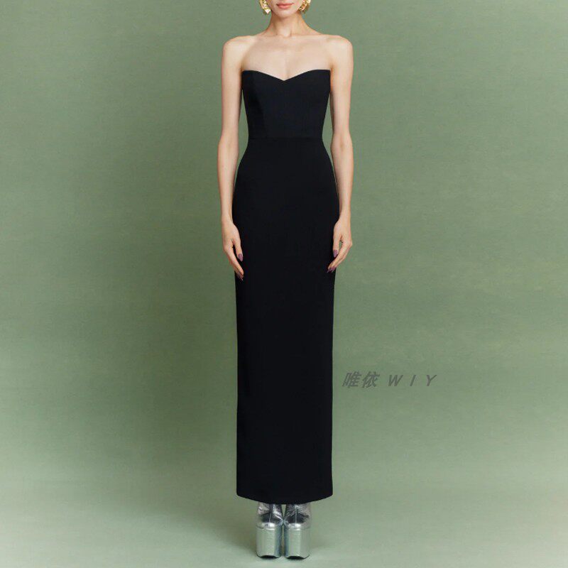 抹胸黑色长裙高级质感2026新款