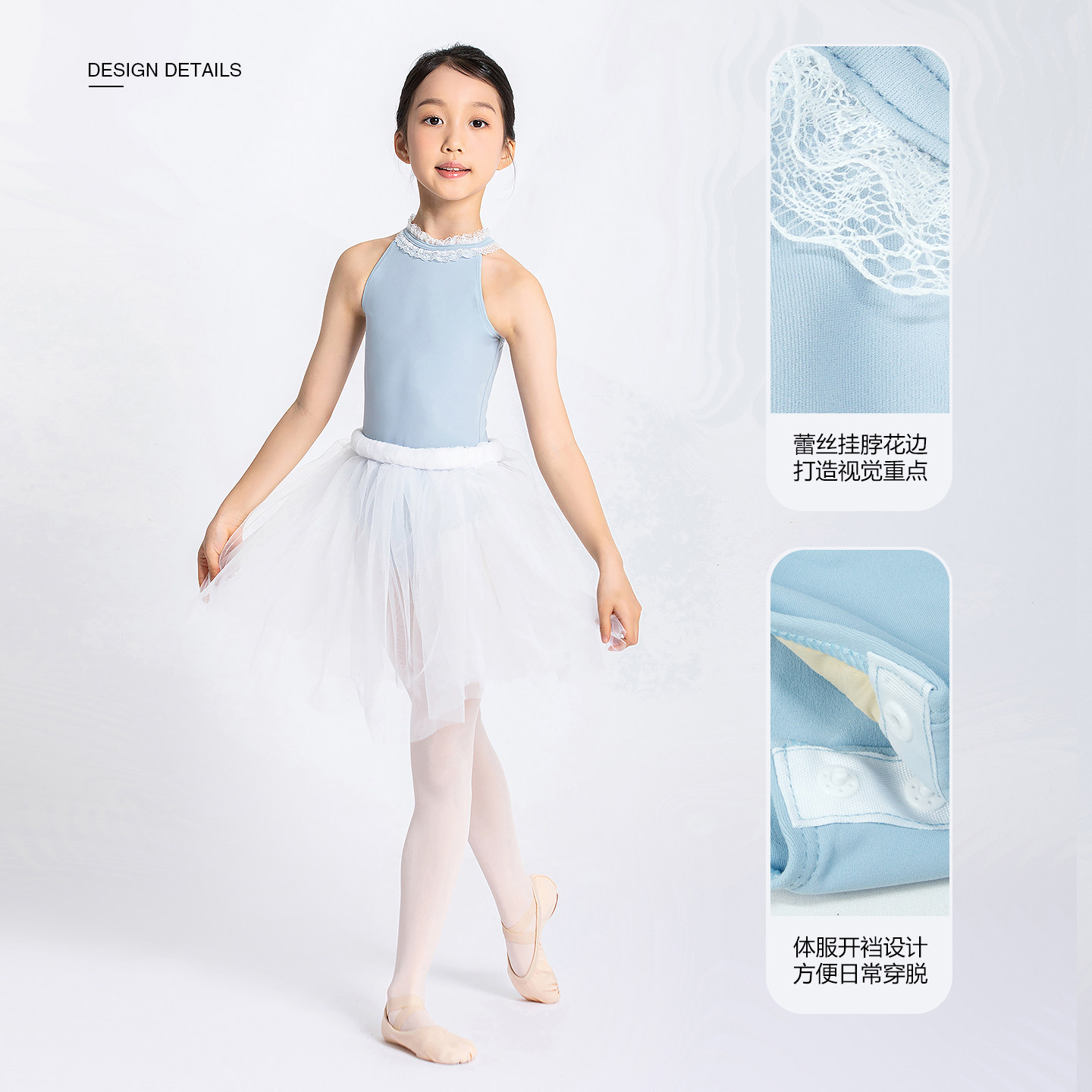 Sansha三沙芭蕾舞蹈练功服儿童女童体操服演出服挂脖连体服