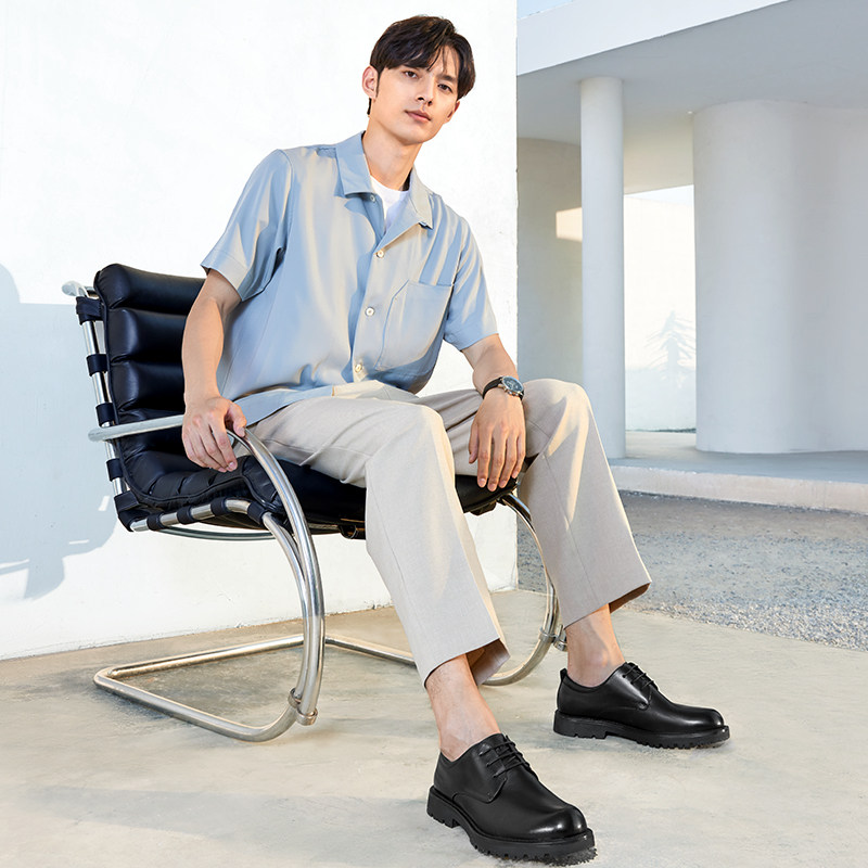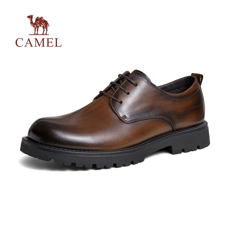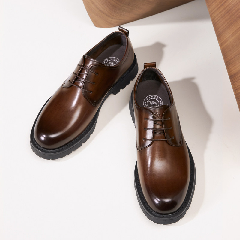 骆驼2025冬季新款光面软牛皮耐磨舒适宽楦新郎结婚商务正装皮鞋男