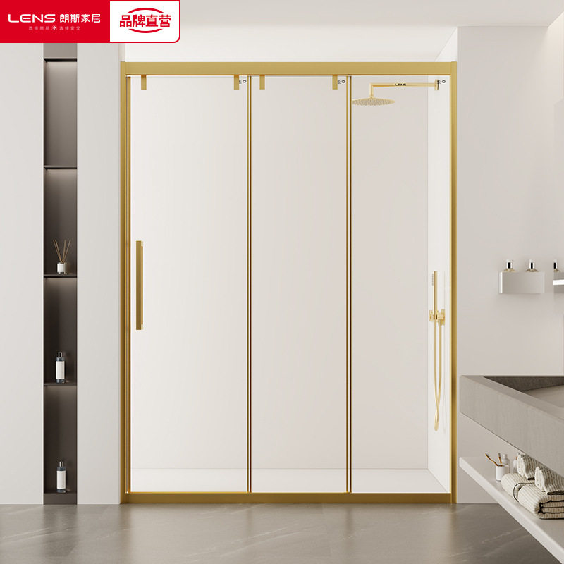 朗斯淋浴房一字型三联动卫生间洗澡玻璃隔断干湿分离凯特系列