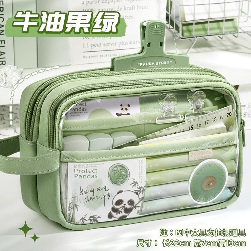 5层熊猫绿色笔袋透明女生新款ins风超大容量2025年高颜值文具盒